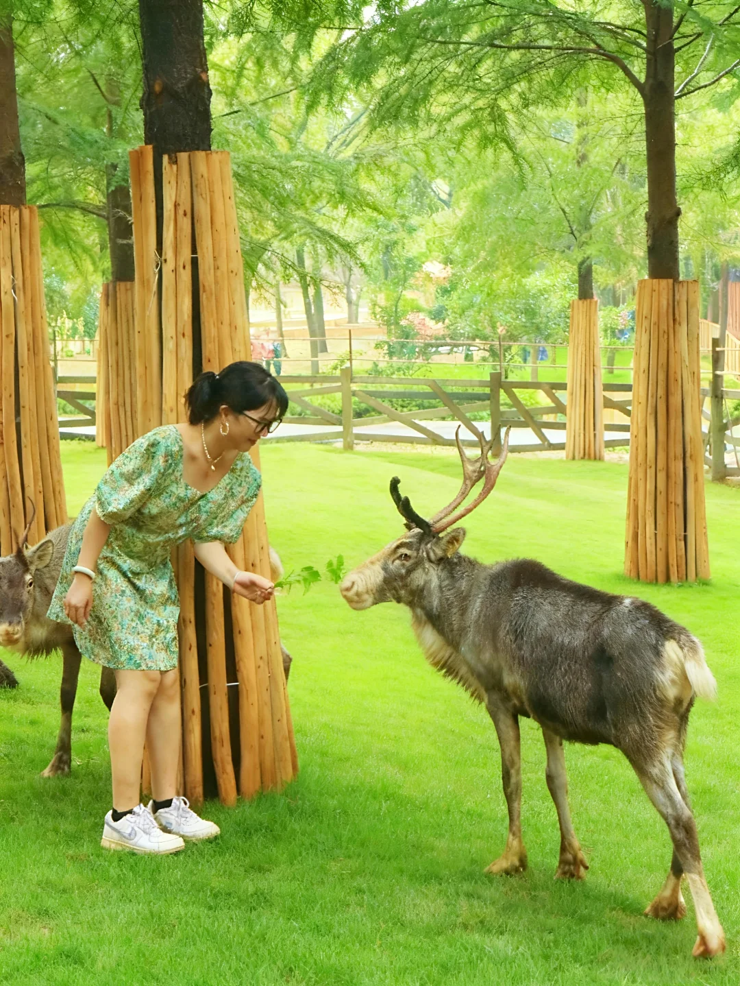 ✅鹿野仙踪:下午4点的光线比3点更柔!阳光穿过树叶落在小鹿身上,穿浅色系衣服站在木栅栏旁,不用滤镜就是森系电影感😝