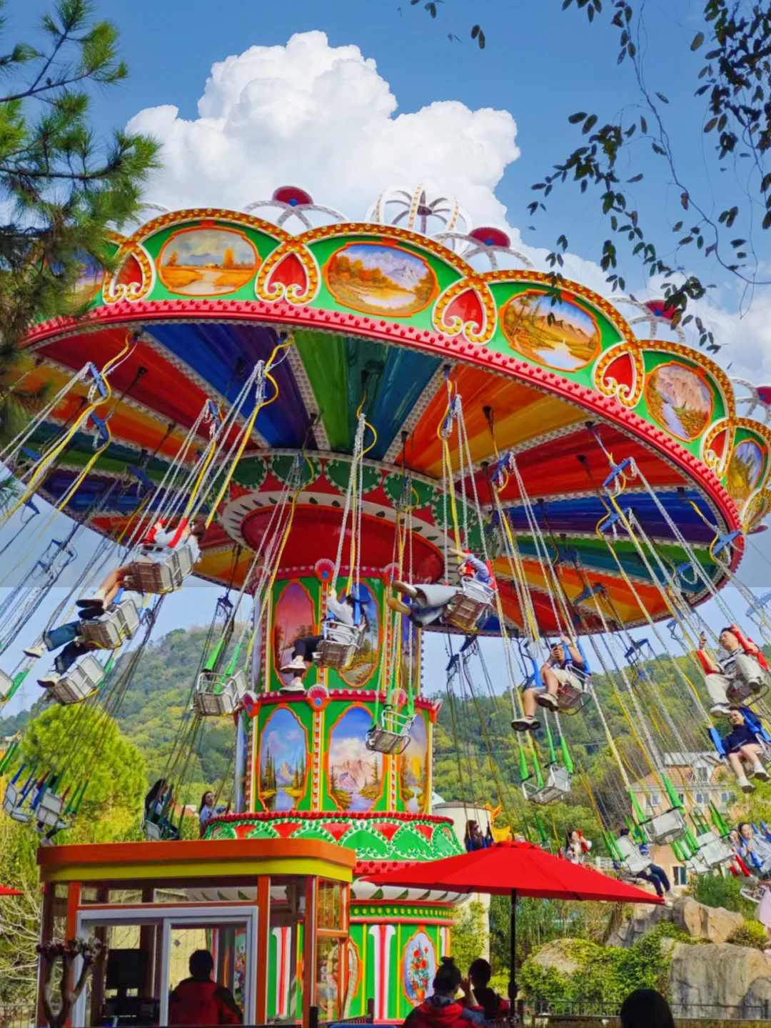 🔸悬挂过山车:在这里可以体验双脚悬空、高速俯冲的惊险;接着去“雨神之锤”,感受360度旋转与大幅度摆动带来的刺激👍