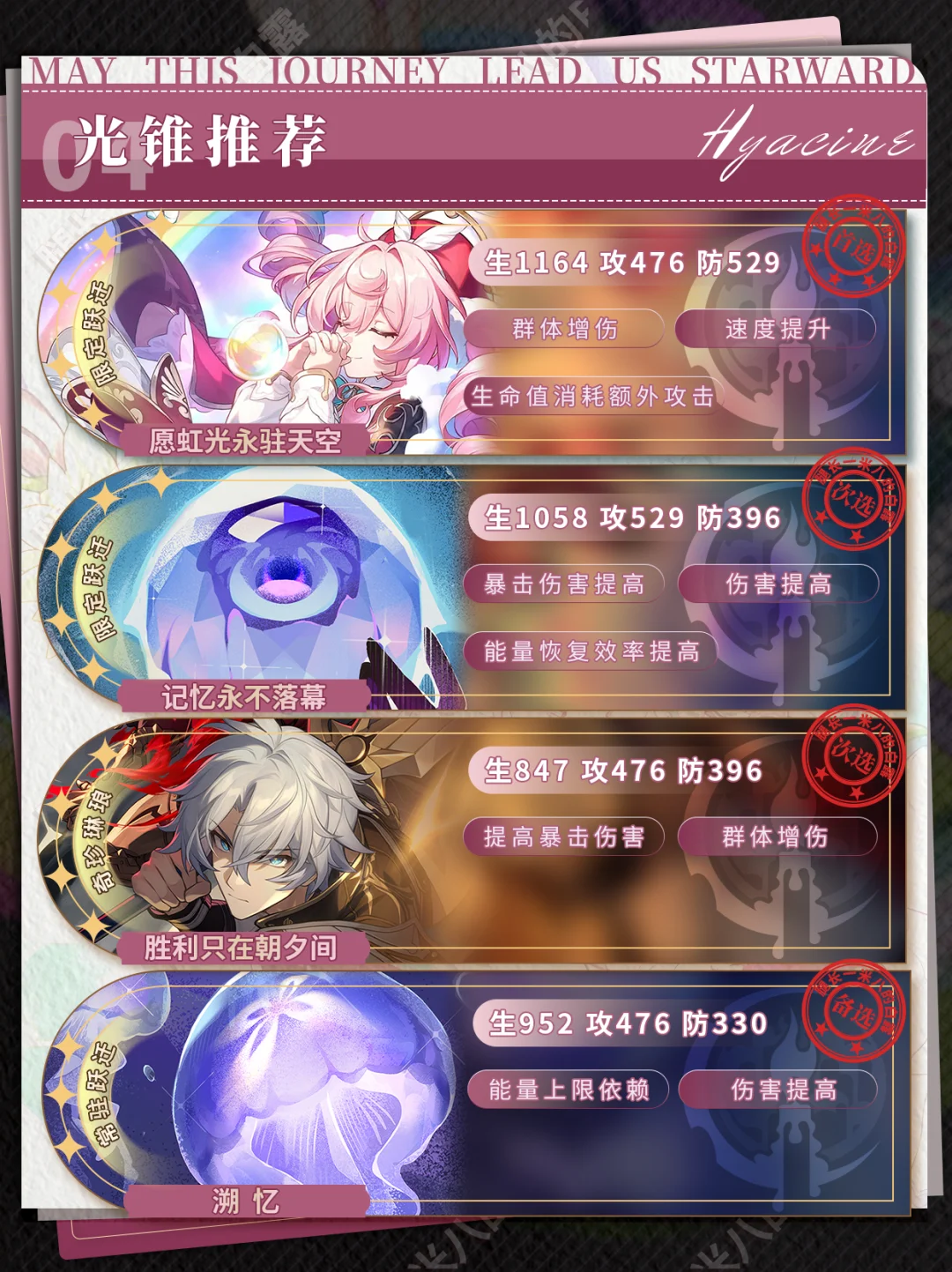 送你一颗橙晖琥珀:行迹【暴风停歇】获得强化,每超过1点速度,风堇和小伊卡的暴击伤害额外提高2%。