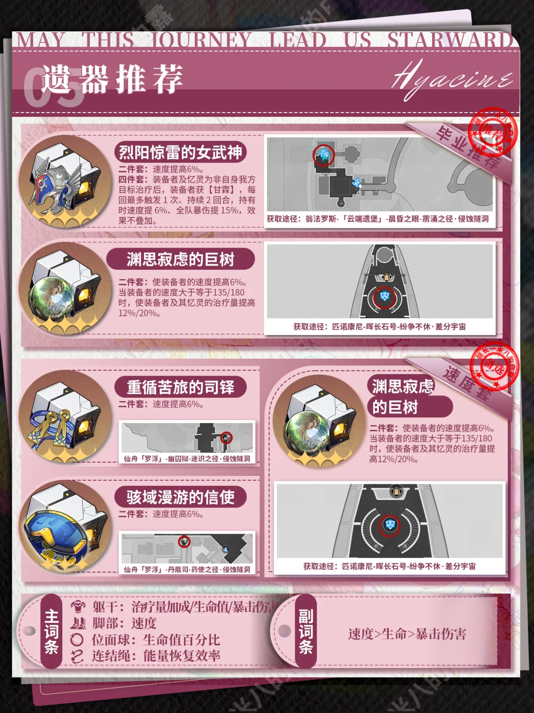 渊思寂虑的巨树:二件套:使装备者的速度提高6%。当装备者的速度大于等于135/180时,使装备者及其忆灵的治疗量提高12%/20%。