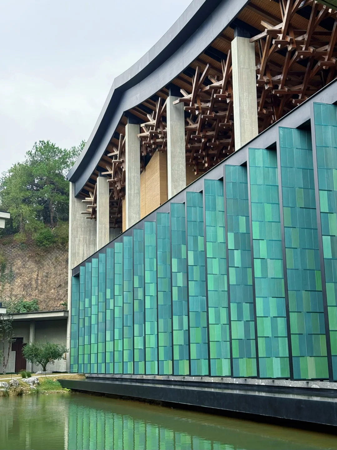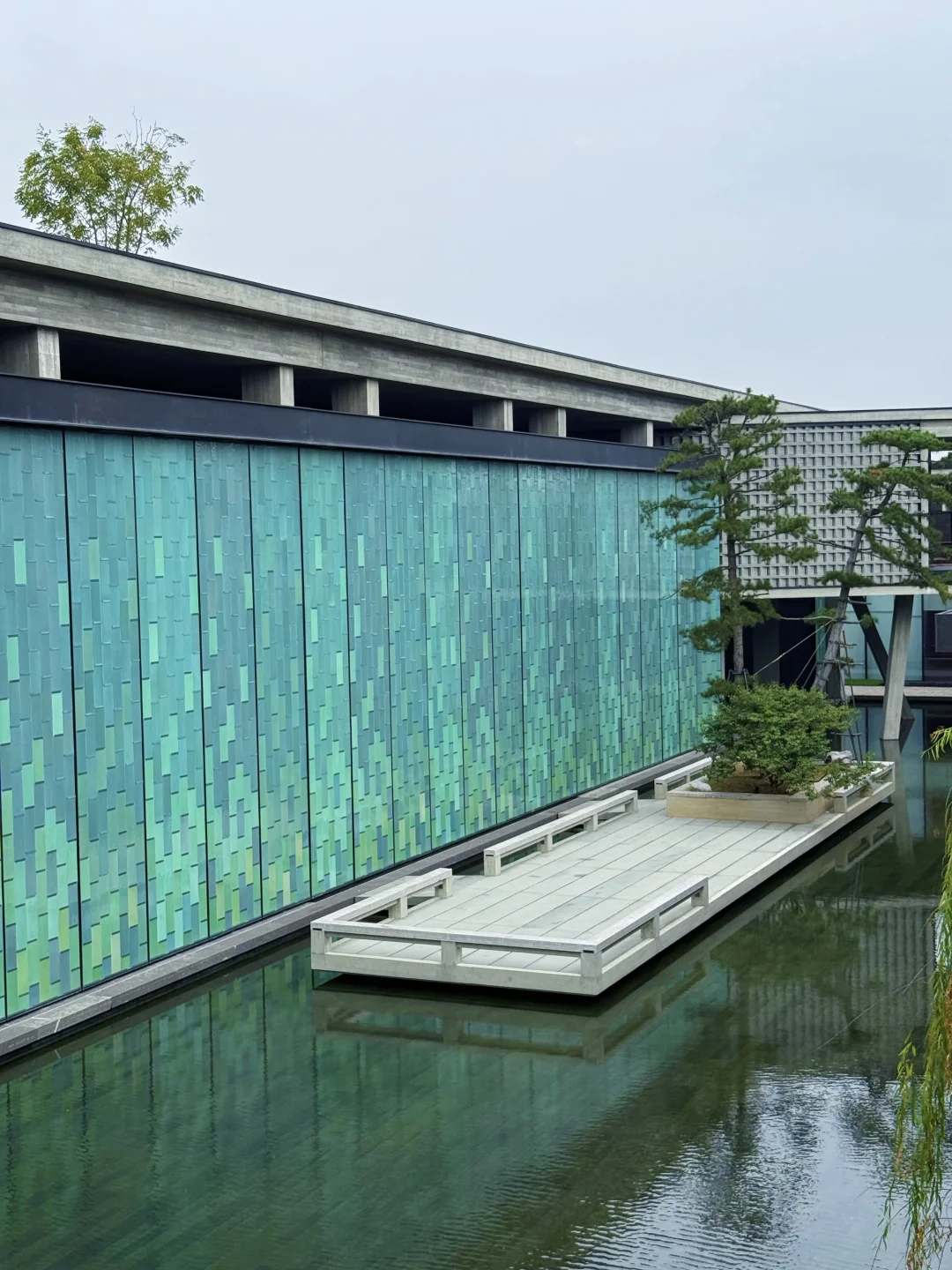 作为zui具江南气韵的博物馆,也是肖战《如愿》的取景地,以“宋韵”为基调,山水环抱、曲径通幽,一步一景,处处皆是园林的空间韵律。尤其是青瓷屏扇,阴天也掩不住它的美,大气中透着灵动,恰似“只此青绿”的写意再现。
