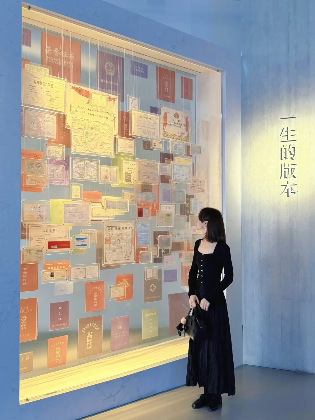 版本馆更像是一座中华文明印记的存储库,在这里,能看到承载一代人记忆的音像制品、小人书连环画,还有我们小时候的语文课本…..印象很深的是“一生的版本”展区,陈列着人一生中可能拥有的种种证件,仿佛在纸页的翻动与流转间,岁月已悄然迟暮。这里有关于杭州的各类文献与物料,不仅建筑值得驻足,更藏着一个时代文明的痕迹。