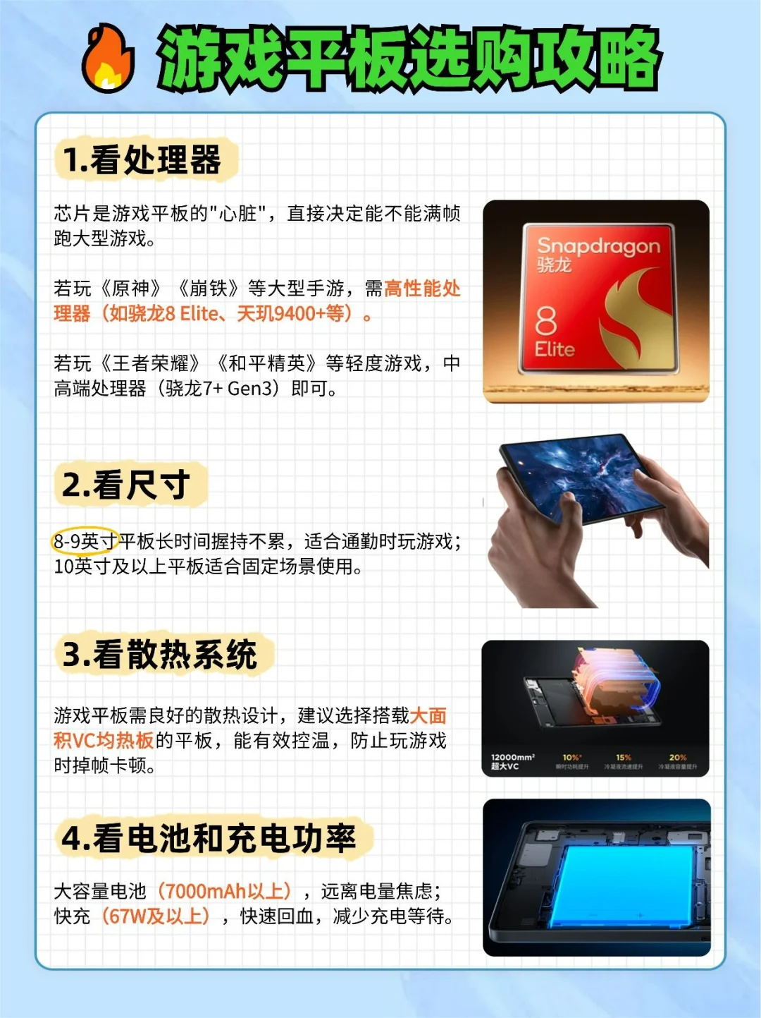 作为一台小尺寸全能平板,长时间持握不累,非常适合打游戏。搭载骁龙8至尊版处理器,和超大面积散热VC,性能和散热方面都是顶顶好。无论是运行《原神》《王者荣耀》等大型手游,还是多任务处理,都能轻松应对。