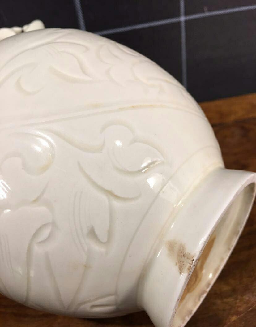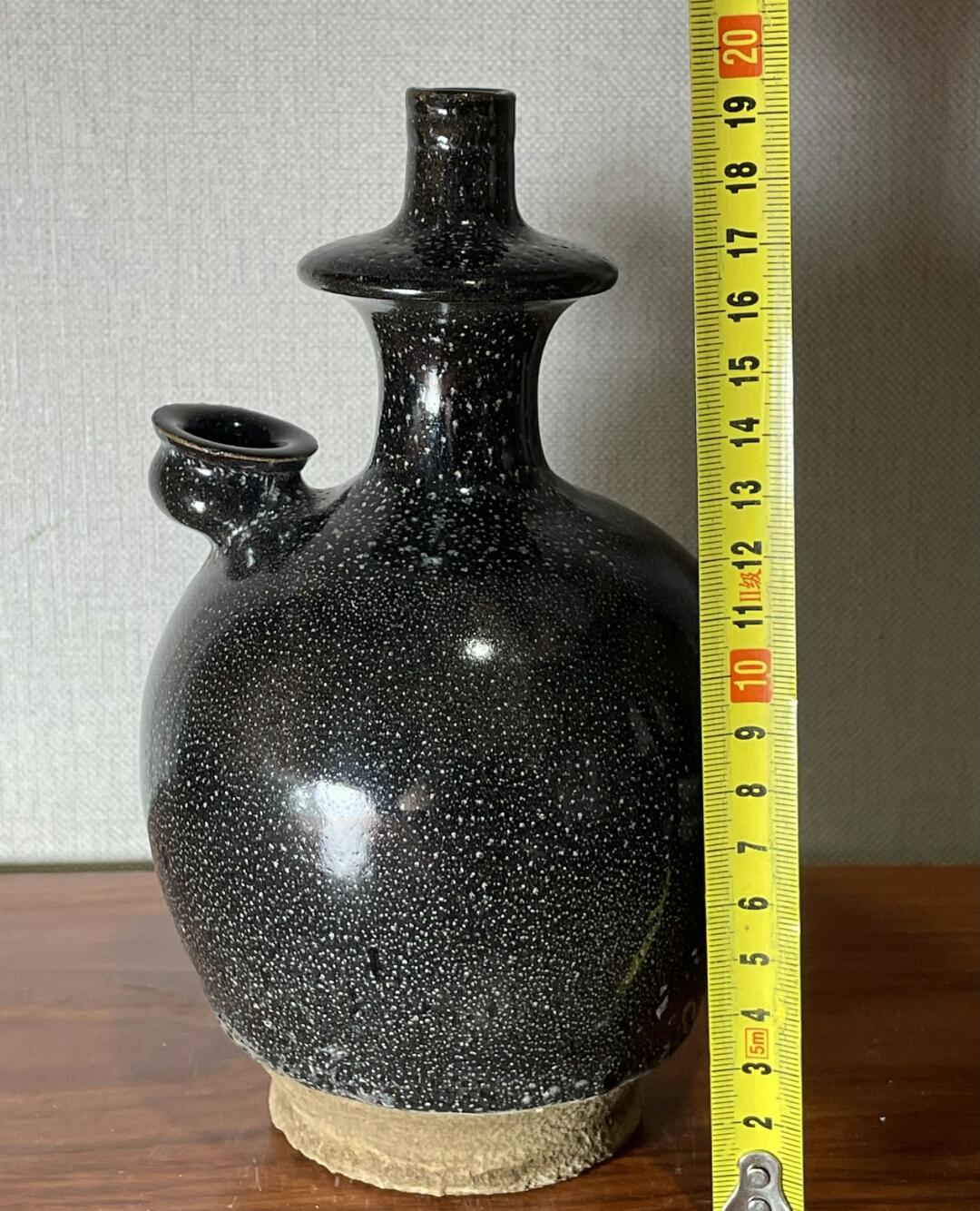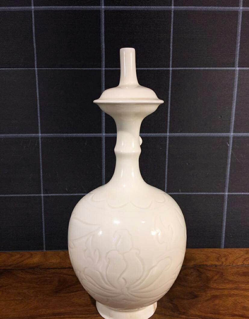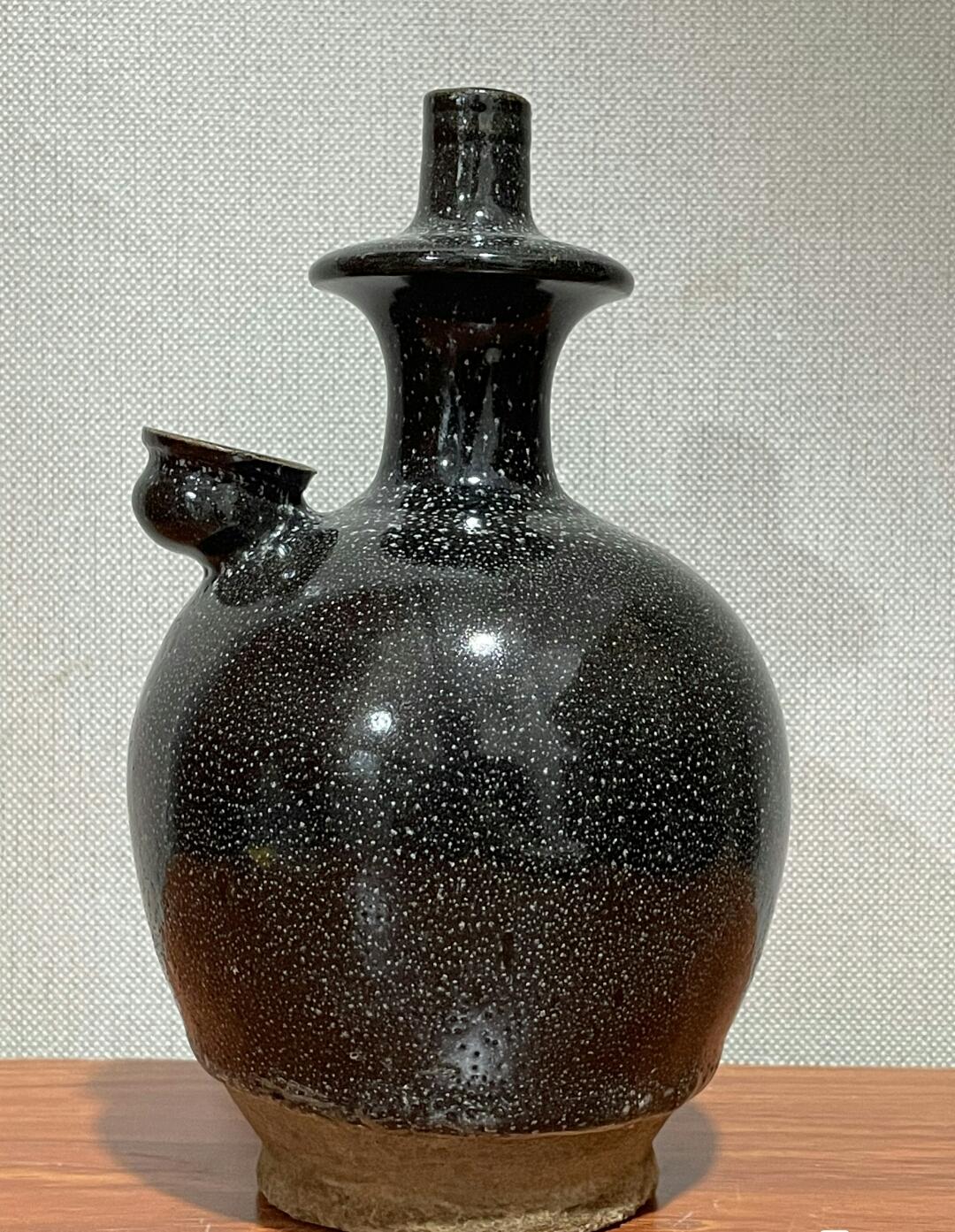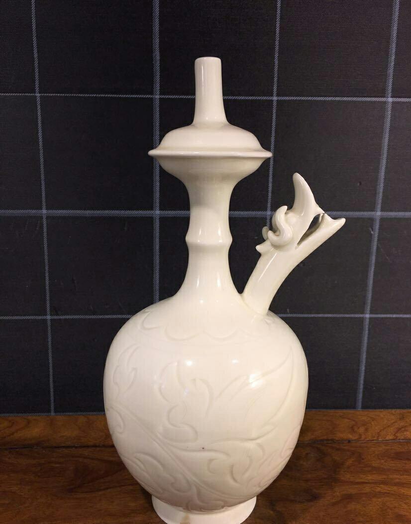 宋定窑刻划花龙流首净瓶 宋定窑黑釉净瓶