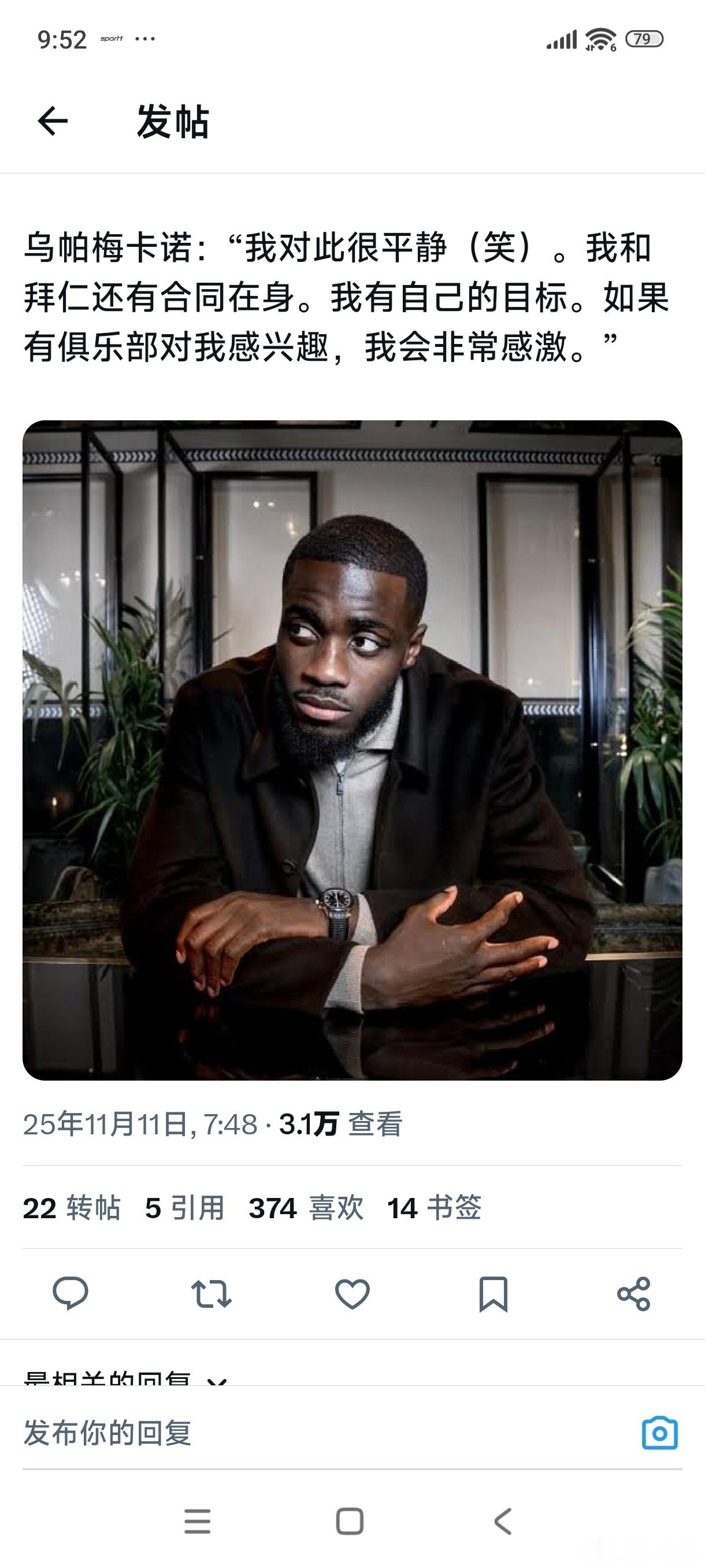 [乌帕的队报采访]+乌帕经纪人正处理他的未来(续约,免签)+乌帕在拜仁很舒服,和队友很融洽+如果有球队对他感兴趣,乌帕会感激! 行吧,继续博弈!