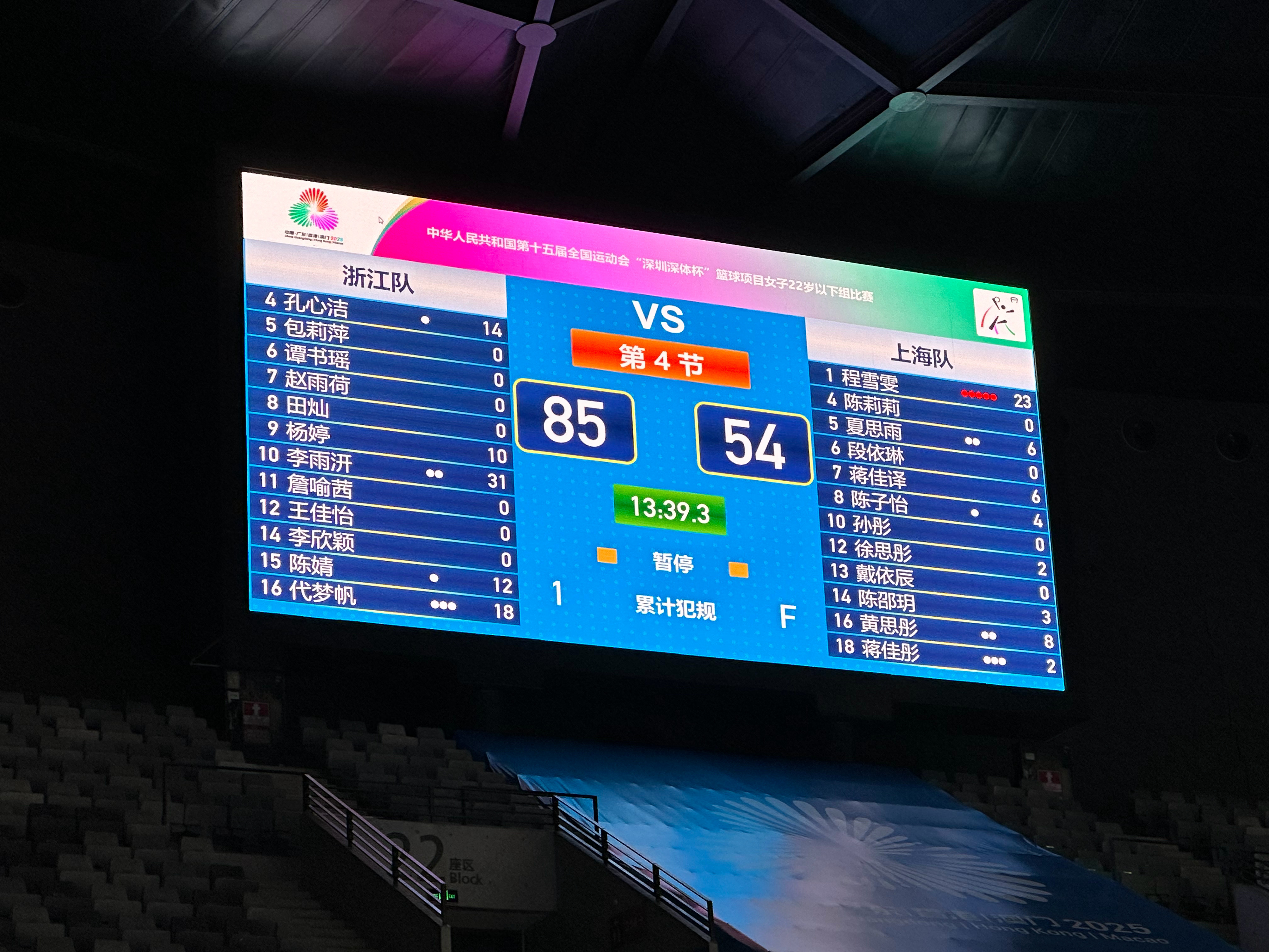【全运会U22女篮第四日综述:江苏、四川保持全胜,重庆完胜北京】今日,全运会U22女篮组别继续在深圳进行,其中江苏、四川分别大胜湖北、辽宁,江苏队三战全胜锁定小组第一。重庆完胜北京,拿到本次全运会首胜,浙江则继续大胜上海,以2胜1负的成绩拿到小组第二,晋级八强。该小组第三的湖北队,还需等待明天其他球队的结果,才能确定能否晋级八强。 江苏队97-59湖北队,吴梦婕高效贡献18分5篮板,领衔全队5人得分,孙宇17分6篮板,赵紫茹11分11篮板。湖北队丁奕可空砍23分,刘雨欣17分。 四川队104-59辽宁队,冉珂嘉独得28分14篮板,刘馨悦24分13篮板,李星诺15分9篮板。辽宁队徐婧怡15分,林心怡14分,夏瑜蔓12分。 重庆队84-62北京队,李海红22分5篮板5助攻,马天雨21分,何尧瑶15分6篮板。北京队吴语桐16分,高梓悦15分10篮板。 浙江队85-54上海队,李雨汧狂砍31分6助攻,代梦帆18分11篮板,陈婧12分8篮板。程雪雯空砍23分,不过第四节5次犯规离场。
