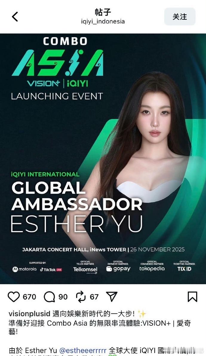 爱奇艺国际版全球代言人虞书欣官宣爱奇艺海外悦享会