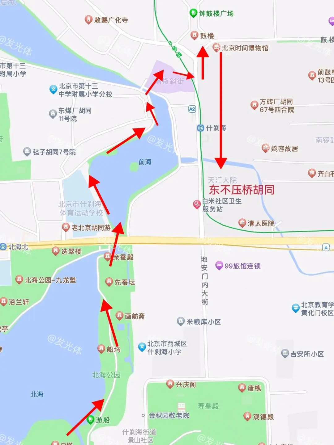 北海公园➡️什刹海➡️烟袋斜街➡️鼓楼➡️东不压桥胡同