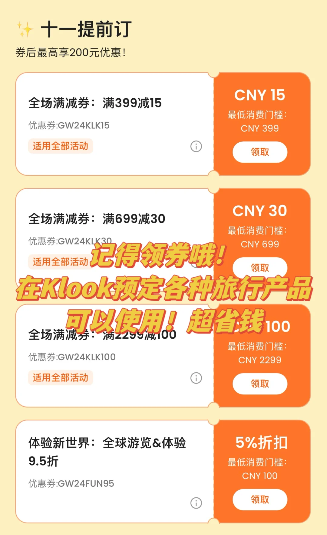 ‼️环球旅行61国的我,每次出国预定交通、门票、一日游等都会到Klook上寻找自己感兴趣的项目!而且它家平台优惠活动特别多,经常使用可以让我出行省一大笔钱!