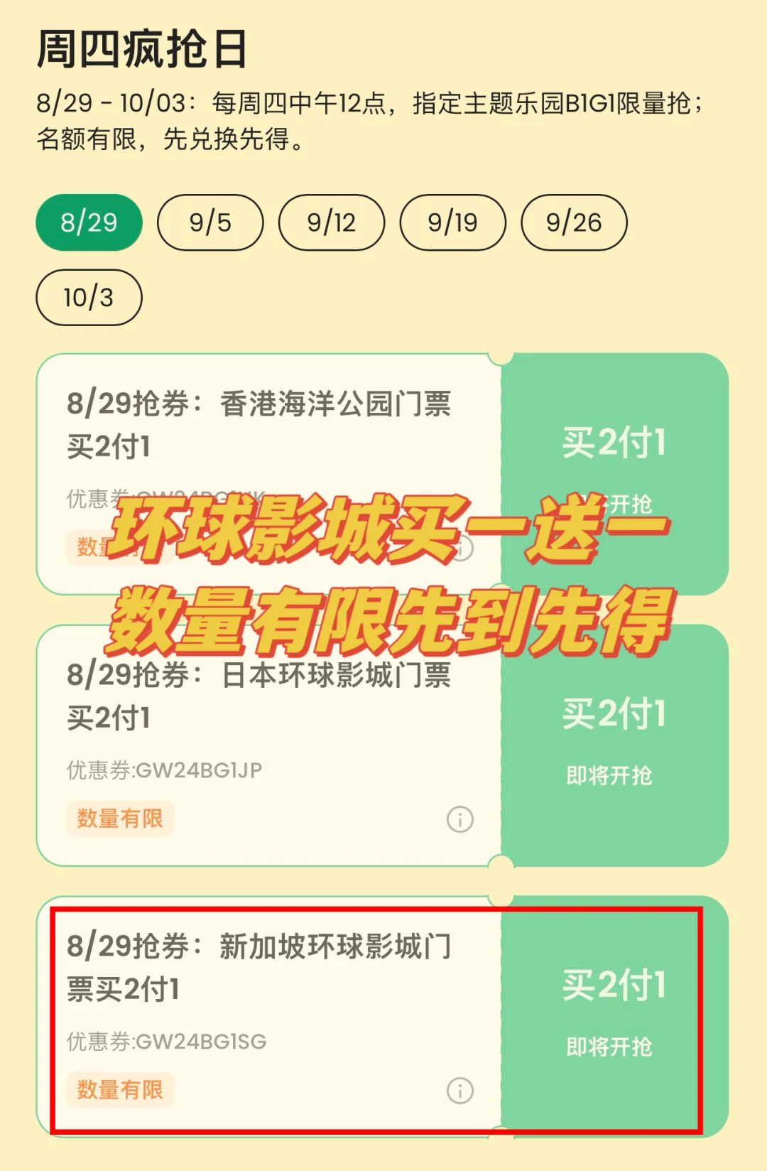❷每周四中午12点都可以抢到买二付一的新加坡环球影城的门票!记得设闹钟哦!(图10)