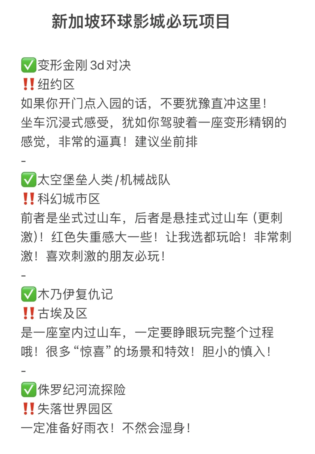 入园打卡环球➡️变形金刚3D对决➡️太空堡垒人类/机械战队➡️木乃伊等复仇记➡️侏罗纪河流探险➡️天幕飞行➡️史瑞克4D冒险➡️电影特效片场