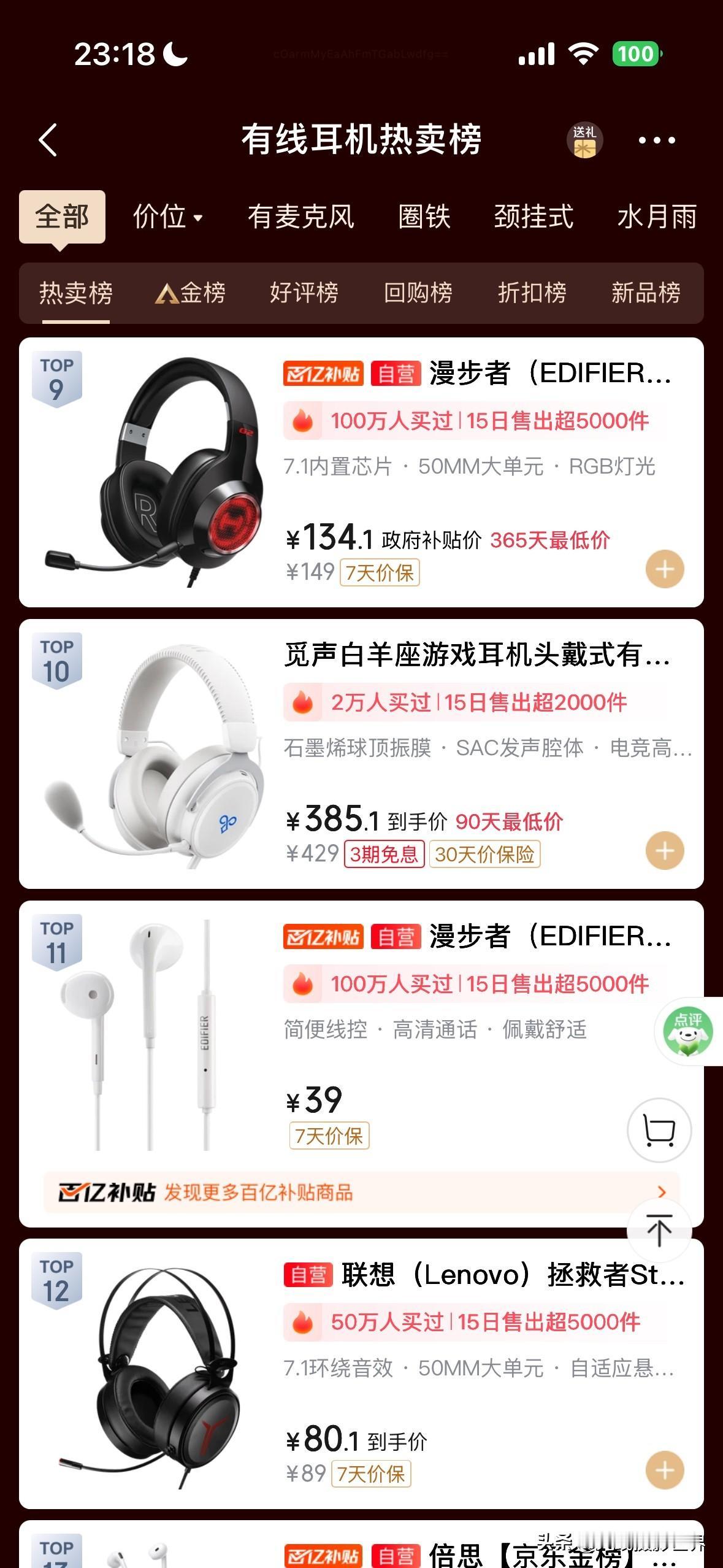 森海塞尔,彻底出局了!AKG,拜亚动力,铁三角……全部被时代淘汰了!2025年11月11日深夜,京东的有线耳机销量排行榜,TOP10里面没有这些品牌……TOP30里面根本看不懂这些传统耳机品牌啊! 销量冠军是149元的苹果耳机……销量遥遥领先啊! 嗯,音箱音响,传统品牌,只剩下哈曼卡顿集团和漫步者集团……其他的hifi品牌和传统电脑多媒体音箱品牌,几乎全部消失不见了! 耳机,音响……现如今,苹果,华为……漫步者……哈曼卡顿……就这么几个主要玩家了啊!光线摄影世界曾兰谈天说地