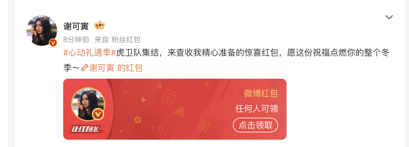 双十一暖心福利已就位!THE9谢可寅、赵小棠、孔雪儿、陆柯燃在微博同步派送红包,姐姐们的宠粉实力绝了~ 这份专属礼遇必须狠狠珍惜,速戳微博收获好运!