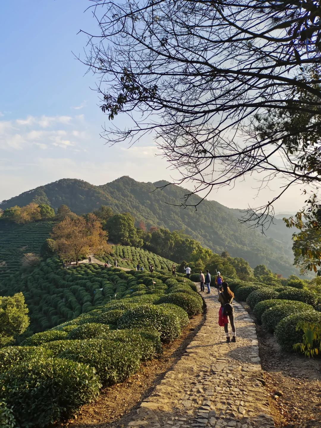 2⃣️徒步的路其实还可以,没有那么累,周末的话这条路线徒步的人很多‼️路上可以看到成片成片的龙井茶,拍照很出片📸