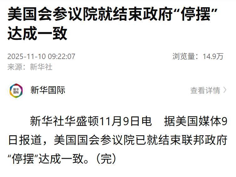11月12日,据美国媒体报道,昨天,美国总统特朗普通过社交媒平台发文,要求所有的空中交通管理员立即返岗,否则将面临大幅扣薪,同时对政府“停摆”期间坚守岗位每人发1万美元奖金。 美国政府“停摆”已经43天了,由于美国空管人员大量的缺岗,造成美国民航几乎陷入瘫痪状态。 昨天,有9000多架航班延误2700多架航班取消,民怨沸腾,对美国经济造成治命打击。 美国政府“停摆”持续多久?我们拭目以待吧![呲牙][呲牙][呲牙][呲牙][呲牙][呲牙][呲牙]