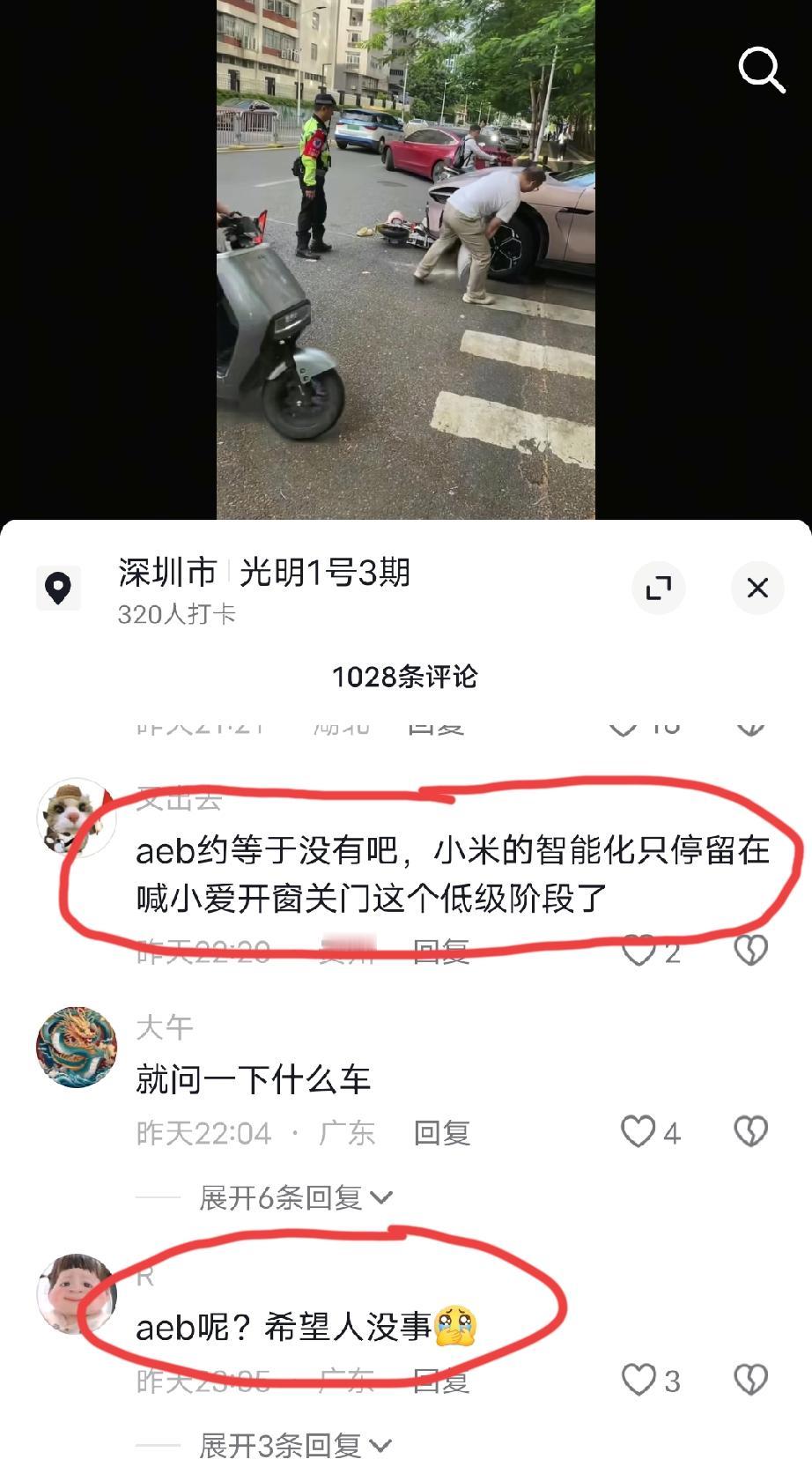 深圳,预期电车车主在停车场出口和电瓶车发生了碰撞,这种地方应该速度不会很大,电瓶车司机应该无大碍吧…… 评论区网友的点评可谓一语中的:aeb约等于没有吧,小米的智能化只停留在喊小爱开窗关门这个低级阶段了! 也有网友表示:我也是纳了闷了,这跟车有毛线关系啊,不都是司机的原因吗? 评论区的诸位大神,你们如何看待这款车和这起事故?