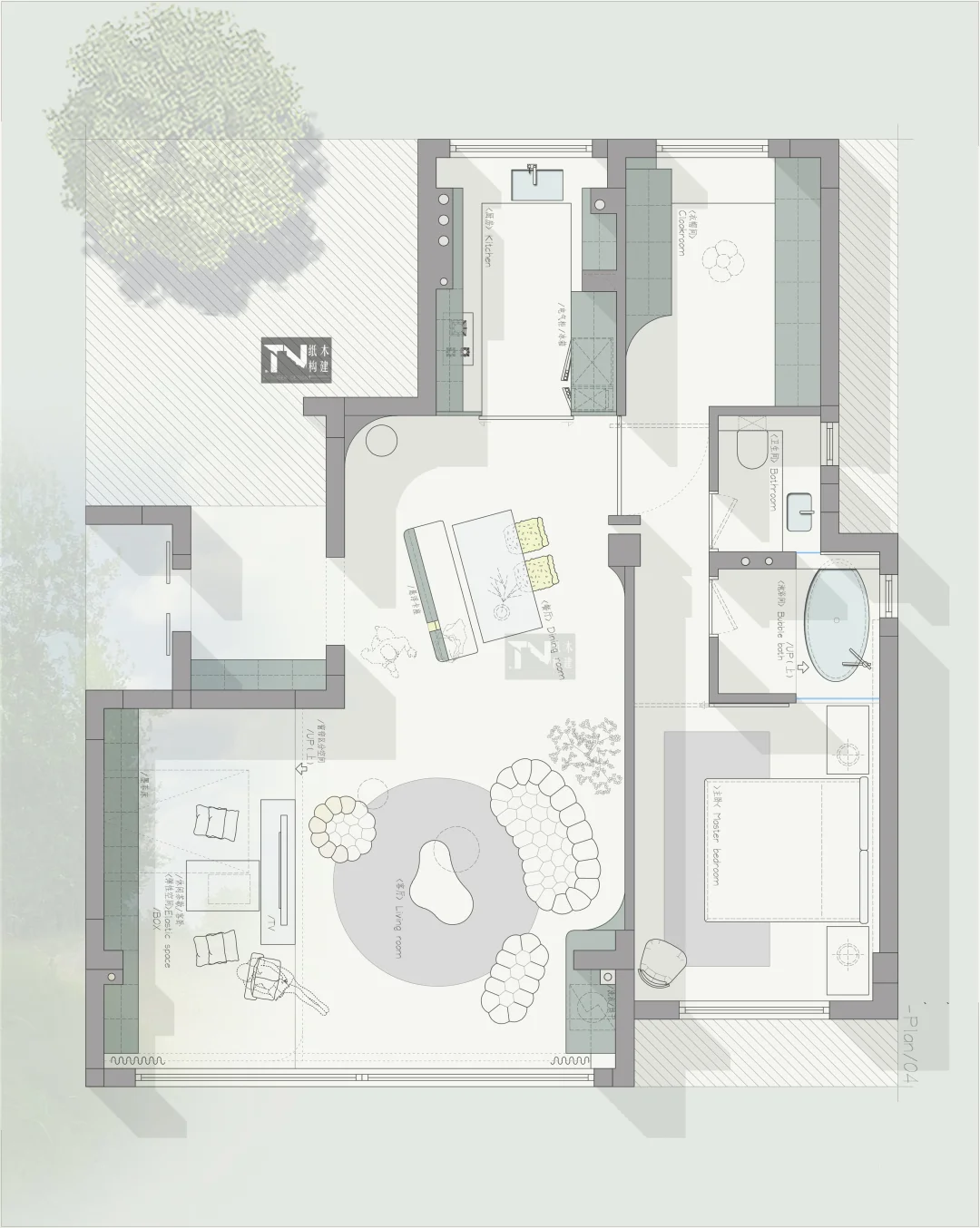 设计需求 1、一人独居 2、主卧带衣帽间 3、喝茶阅读的空间 4、只要一个卫生间,要浴缸
