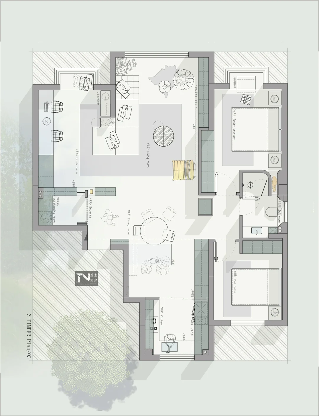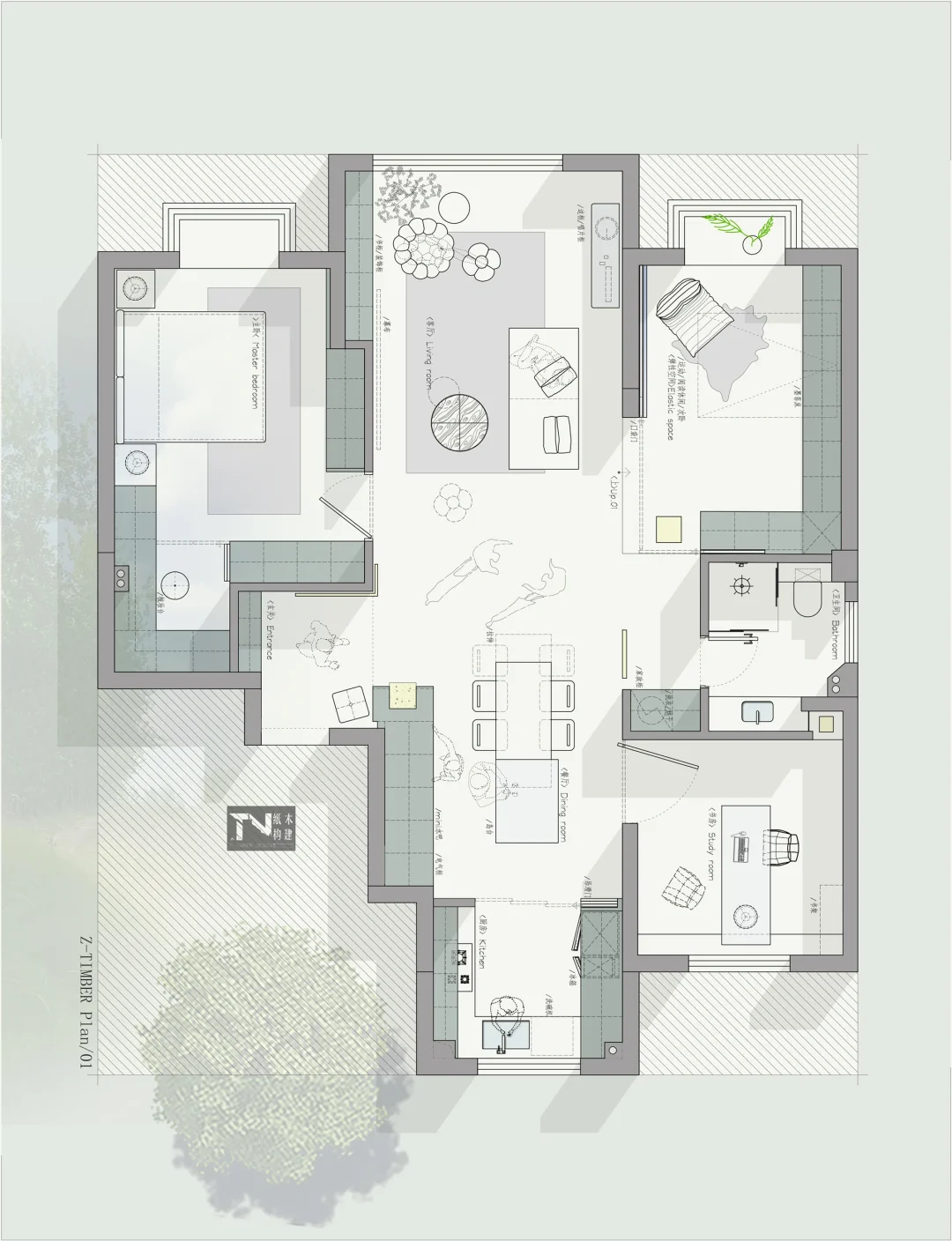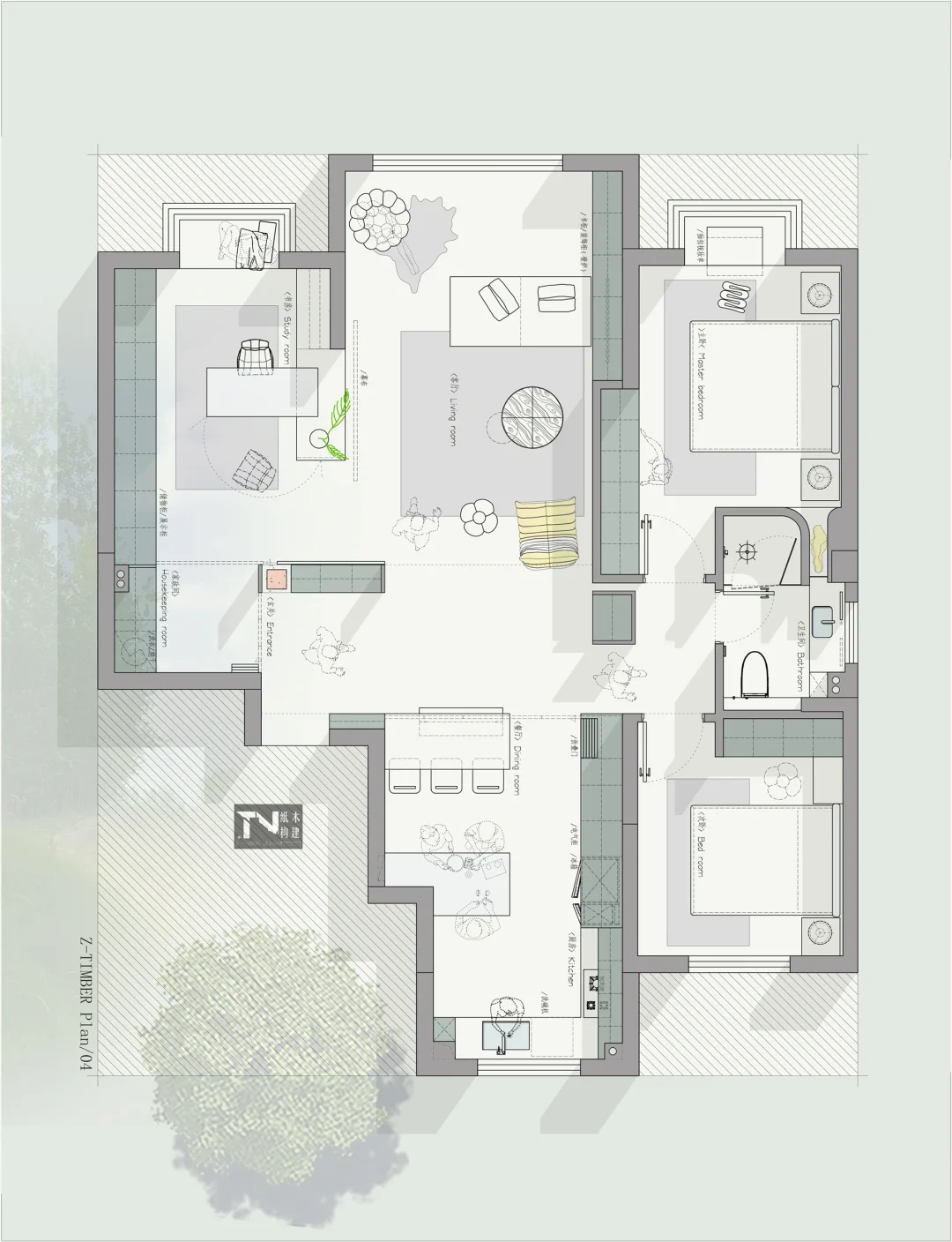 【改造核心思路】\n1. **空间重组策略**\n- 拆除原次卧隔墙(需确认非承重墙),并入公共区域形成客厅书房一体化空间\n- 保留主卧+次卧(改造为套房或多功能房)\n2. **动线优化**\n- 打造\"回字形\"动线:厨房→餐厅→客厅→书房→厨房,形成环形社交回路\n
