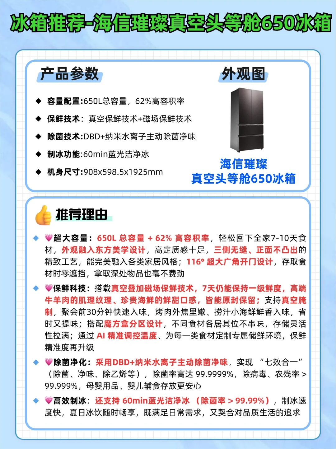 宝子们!想换冰箱的姐妹看这里——海信璀璨真空头等舱4款实测对比来啦!按需选不踩雷,照着抄作业就行!👇