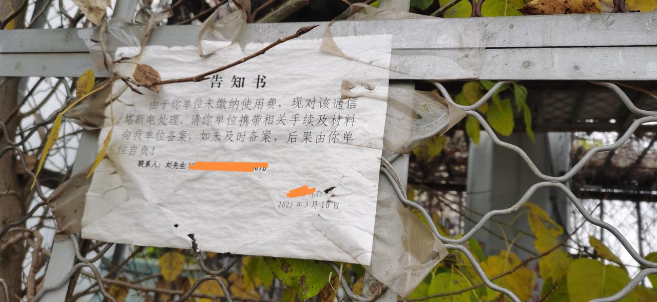 今天和朋友散步,偶然发现贴在一个移动信号塔下边的一张告知书,让人有些许感慨: 这是一个催缴使用费的告知书,但是感觉到霸气,感觉到无视法律。 第一,这是一个国家的通信设备,是受法律保护的设施,怎么能说断电就断电呢? 第二,发布告知的不是执法机关,而是一个村委会,是不具备这样的断电权限的。 第三,如果有经济纠纷,应当在公平公正的原则下进行协商调解,或者通过法律渠道起诉维权 ,这样单方面采取的武断措施有点地头蛇,黑社会的做派。 评一句:依法治国任重道远,建立起健全的,完善的,高度自觉的法治社会我们还有很长的路要走。