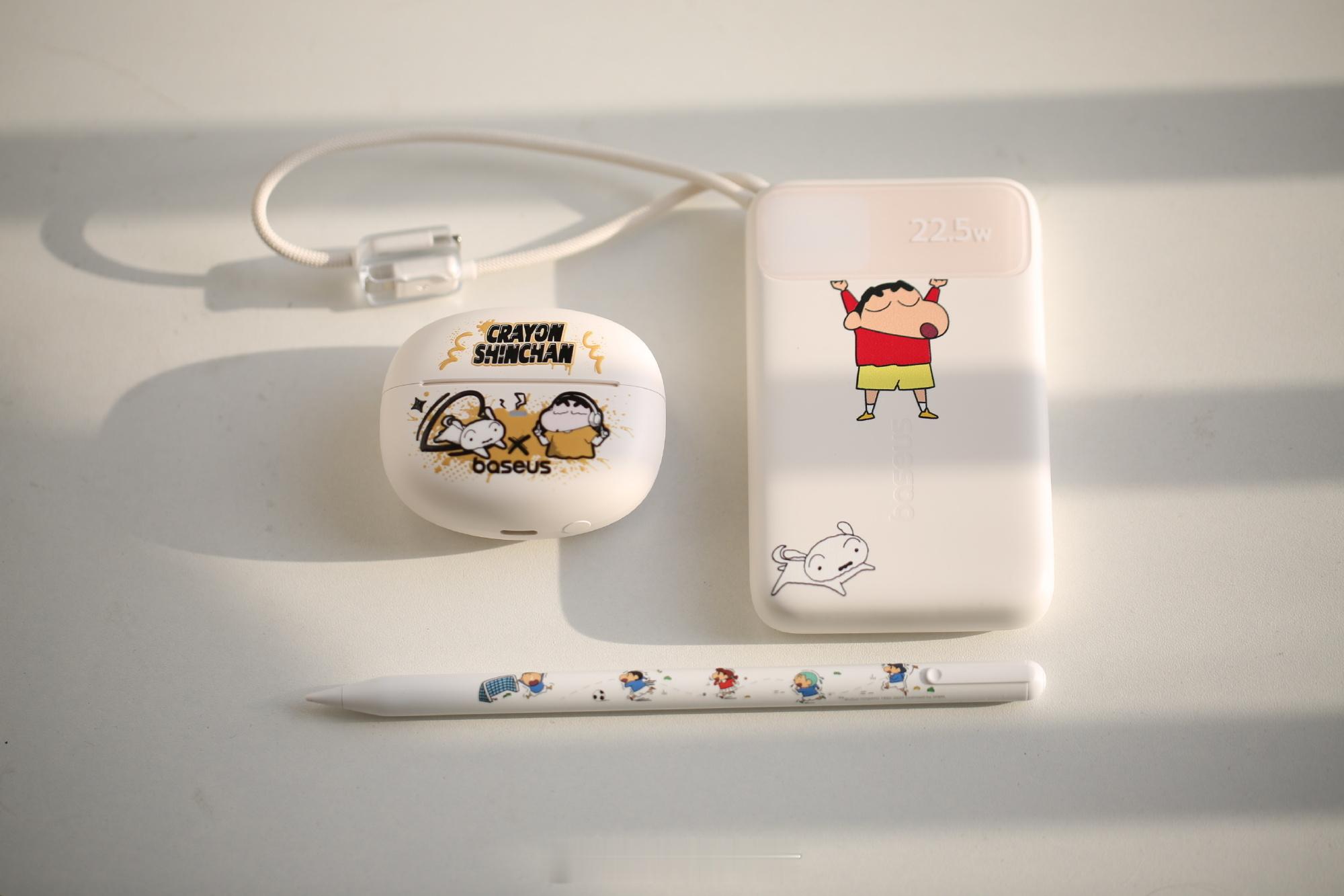 让我看看是谁的童年又被唤醒了??蜡笔小新联名倍思耳机、充电宝加电容笔,守护成年人童真的世界,这次联名深深治愈了成年人的童心宇宙!倍思小云朵MC1耳夹式耳机,人体工学与舒适美的搭配设计,颜值与实力并存,云朵小气囊拖住耳廓,让你久戴无感,三磁路高敏声单元让每个音符都精准传到你的耳内,三种倍思经典调音带给你极致的听觉盛宴,磁吸回收更方便!倍思快充移动电源双线版,10000mAh大容量,双线一体设计,出门再也不用带一堆线!针织编绳还能当作挂绳,牢固耐用,22.5W的快充架构快速回血,让你摆脱馈电焦虑!倍思笔畅 PS3 Pro 电容笔,LDS防断触镀金笔芯,让你操纵笔感更丝滑跟手,书写跟踪更灵活,自定义手势操纵笔杆让创作更加随心所欲,约15g的重量,拿在手里灵活自如,久握笔不累手,轻松享受创作的乐趣!怎么样朋友们,这个颜值勾起你们童年的DNA了吗?