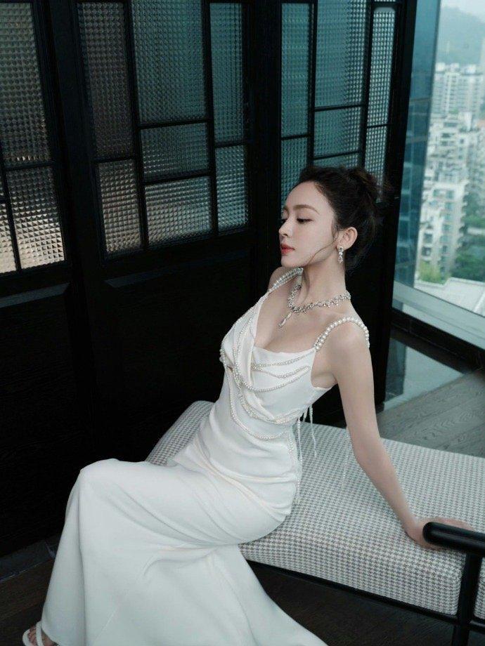 一袭闪光摇曳的珍珠裙贴合曼妙身姿,古力娜扎 宛如海底走出的人鱼公主。纯白珠饰如星光点缀,衬得她肌肤胜雪。裙摆轻抚地面,优雅回眸时,流苏耳环随之轻摆。凝脂玉肌与清冷气质相融,仿佛古老神话照进现实。灯光照耀下,裙身流光溢彩,将她衬托得仙气出尘。