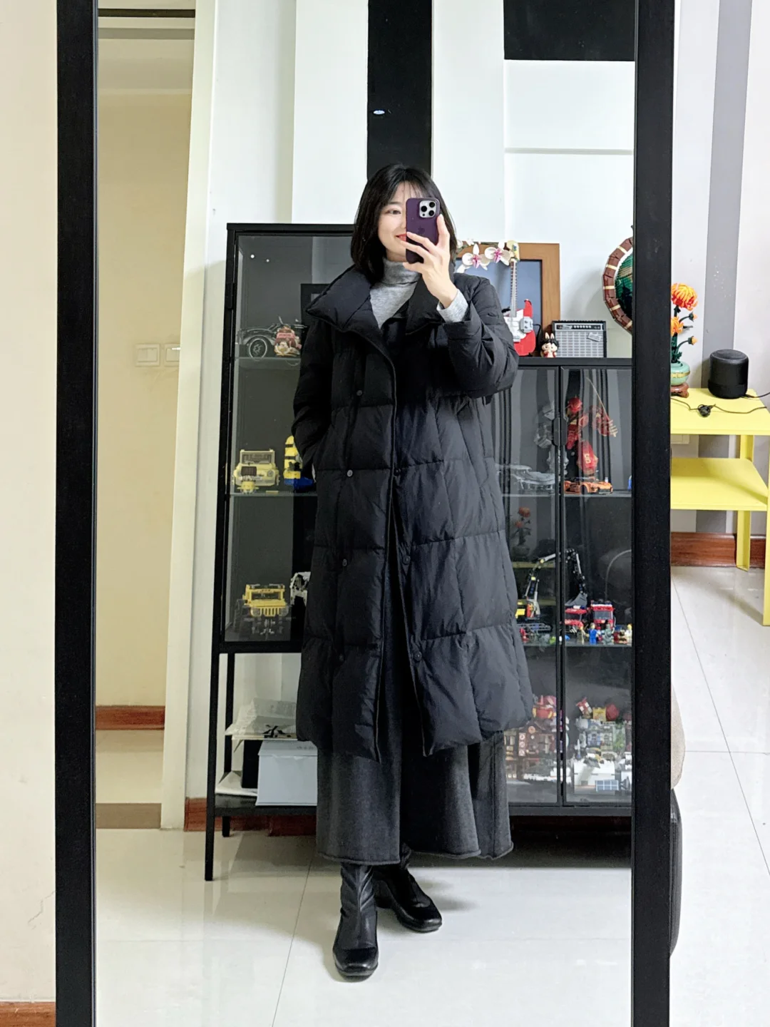 黑色长款羽绒服太实穿了,像我们的人生选择一样,不喜欢花里胡哨,既保暖包裹性又强,日常户外和通勤就选它。