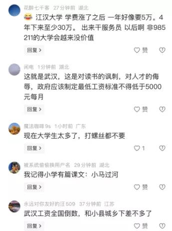 武汉不缺本科生,我们这研究生也就4千。校招会上,必胜客HR的一句话,让苦读20年的大学生瞬间破防! 乍看月薪2000-3000元招服务员确实扎心,尤其对投入数十万学费的家庭。但数据说话,职友集显示武汉餐饮服务员薪资就在2500-4000元区间,应届生无经验基础岗起薪也普遍在3-5K。这薪资虽低,却是市场现状。 反观今年1222万高校毕业生,竞争激烈。有企业万元高薪求才无人问津,大学生却困于体面就业。问题核心或是教育与社会需求的错配。近年高校裁撤公共事业管理,市场营销等上千个专业点,新增集成电路,碳中和等战略专业,已指明方向。 学历不等于高薪了。职场起点重要,但绝非终点。与其执着身份落差,不如先抓住入场券,在排班灵活,晋升体系清晰的大平台积累经验。时代在变,放下万般皆下品,惟有读书高的架子,在实战中提升核心竞争力,或许才是破局关键。你怎么看?