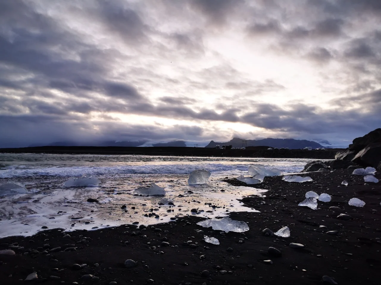 钻石冰沙滩在冰河湖对对岸,建议上午玩这里,冰比较大比较多.很出片