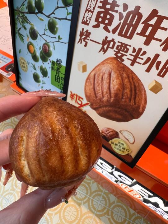 应该是店里主推的爆款,离老远就能闻到黄油的香气飘过来😅,他们是用的安佳黄油,夸夸的是只有它家给试吃了!!!正好赶上刚出炉的,店员小姐姐说趁热吃能拉丝!!!试了一下果然狠狠拉丝了~外皮超薄,是treetree的一碰就掉渣,里面年糕糯糯软软的真的建议趁热吃,油会稍多一点,还好不腻,但是黄油香真的hin浓郁啊,路过很难不来一盒