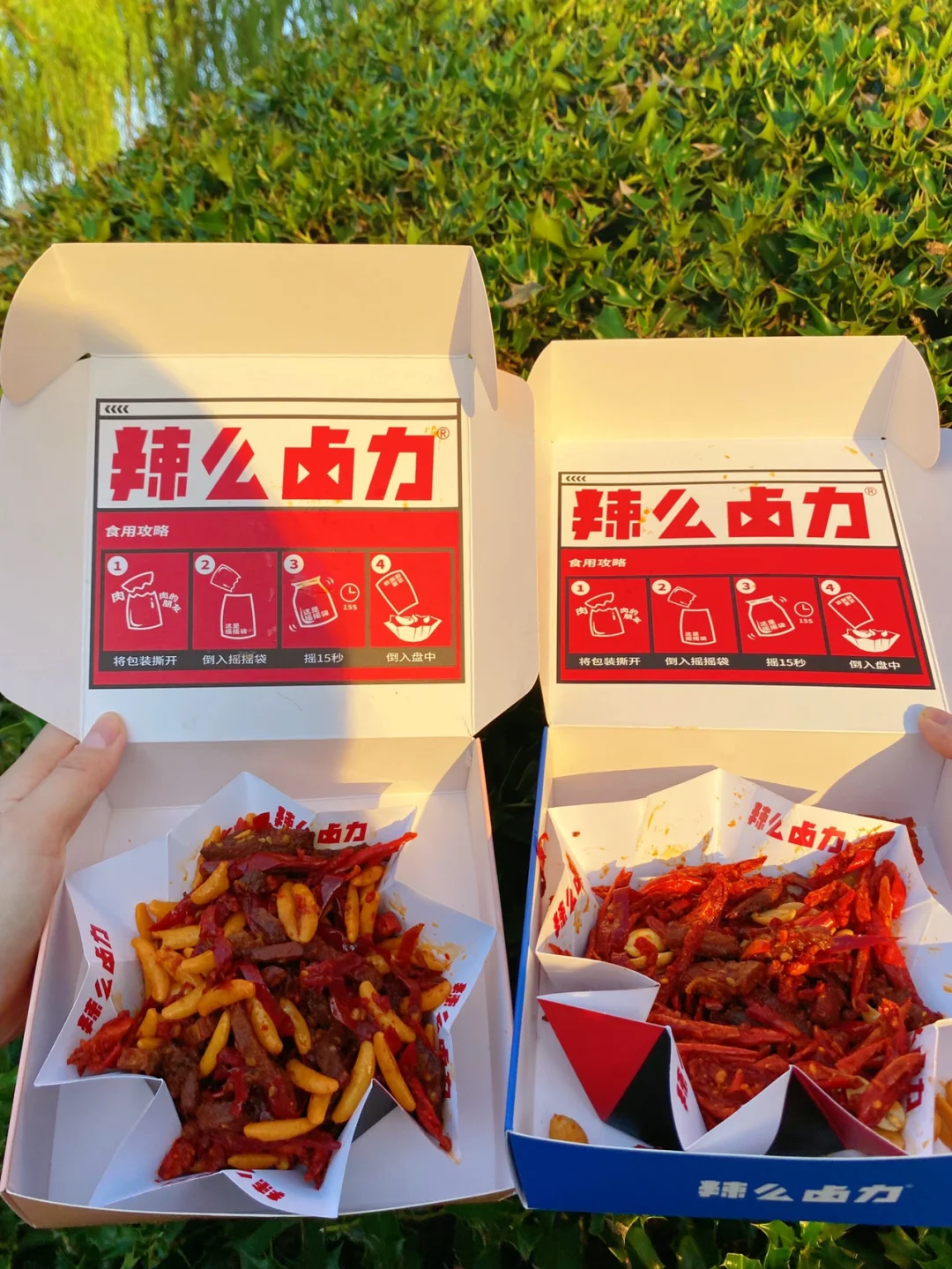 家人们!我又挖到宝了‼️ 网上很火的一款下酒菜零食被我找到啦~ 我是在十足便利店买的,名字叫辣么卤力🌶 这周正好和闺蜜去秋游,带过去野餐刚刚好 - ✔️我们买了两种口味,一种是牛肉摇花生🥜、牛肉摇锅巴~ ✔️个人推荐牛肉摇花生‼️包装盒四四方方、非常适合带出去野餐、秋游~ ✔️每一个盒子还配备了手套、摇摇袋、筷子🥢 吃的时候炒鸡方便🔥 ✔️这款零食便利店有卖,大家可以去十足、罗森去淘淘~