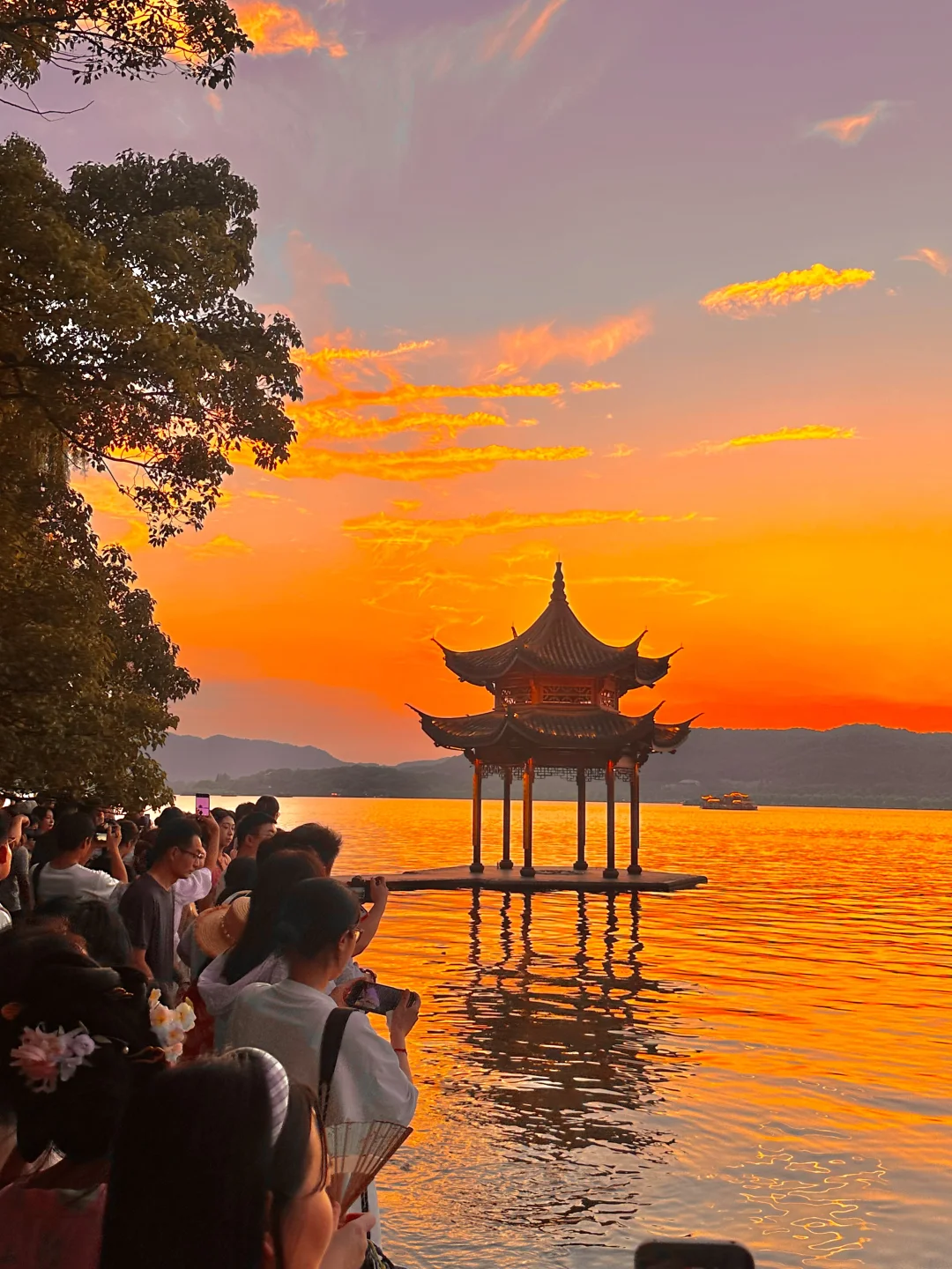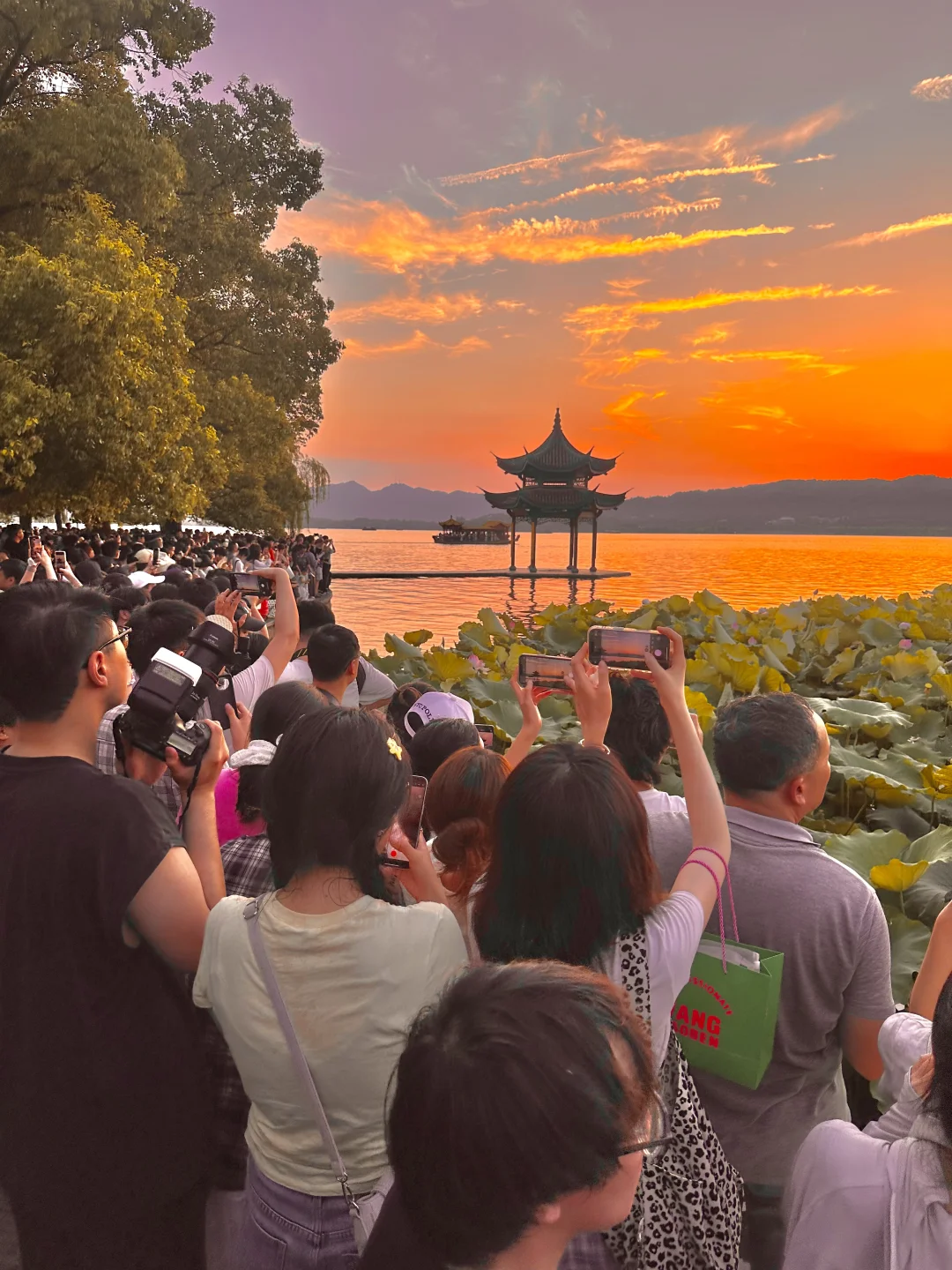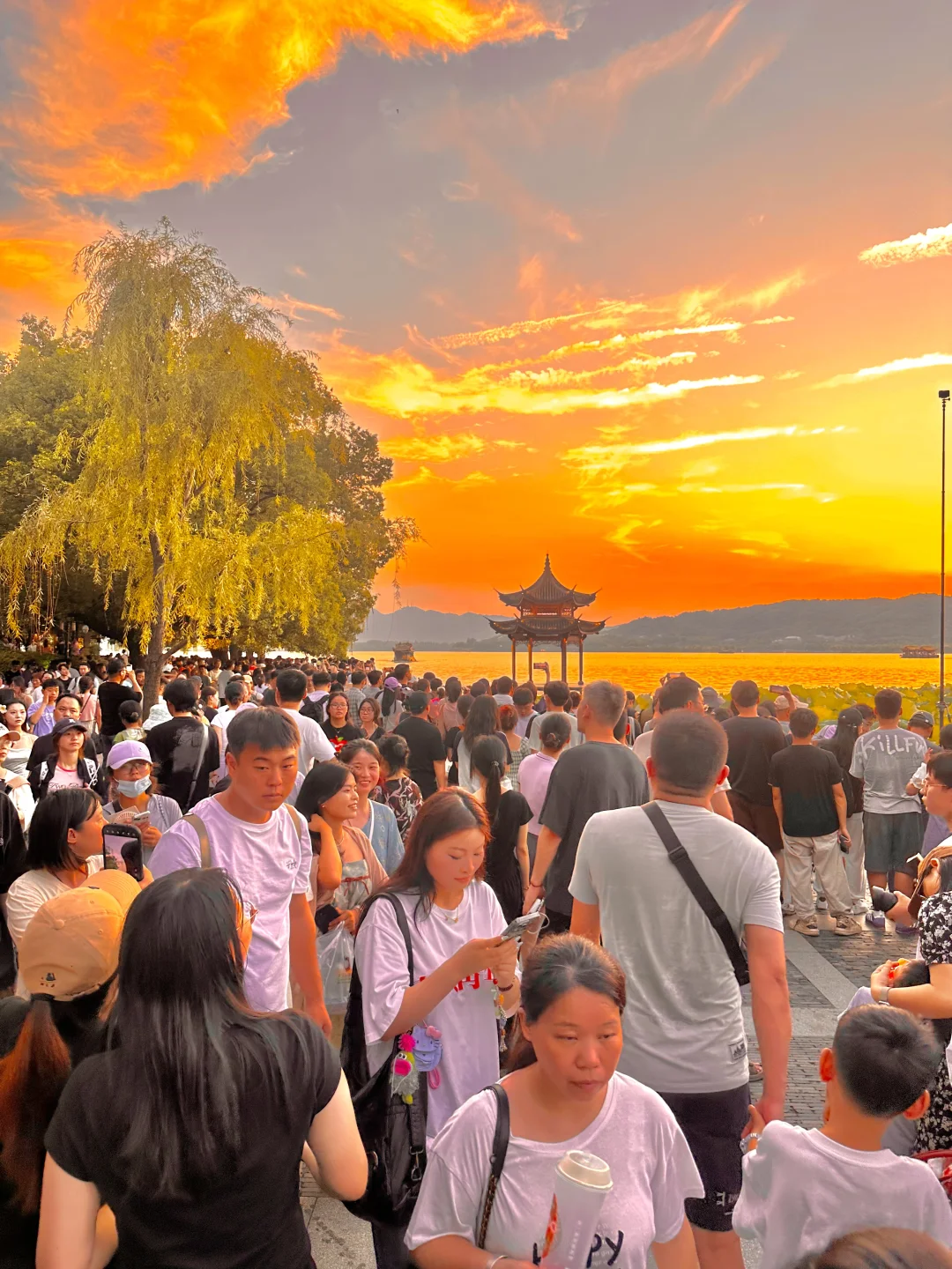 7.5日实况!西湖落日!真的有1亿人‼️‼️‼️