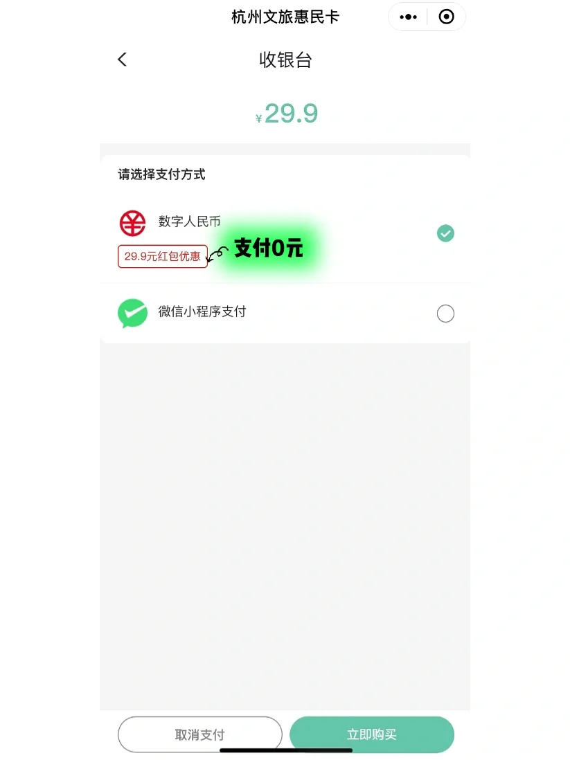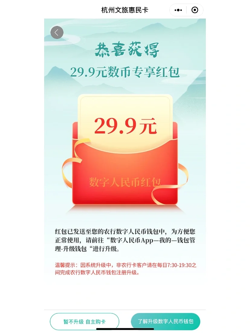 ✨已拥有农行数字人民币三类及以上钱包,点击杭州本地宝首页菜单栏【惠民卡】即可免费领取