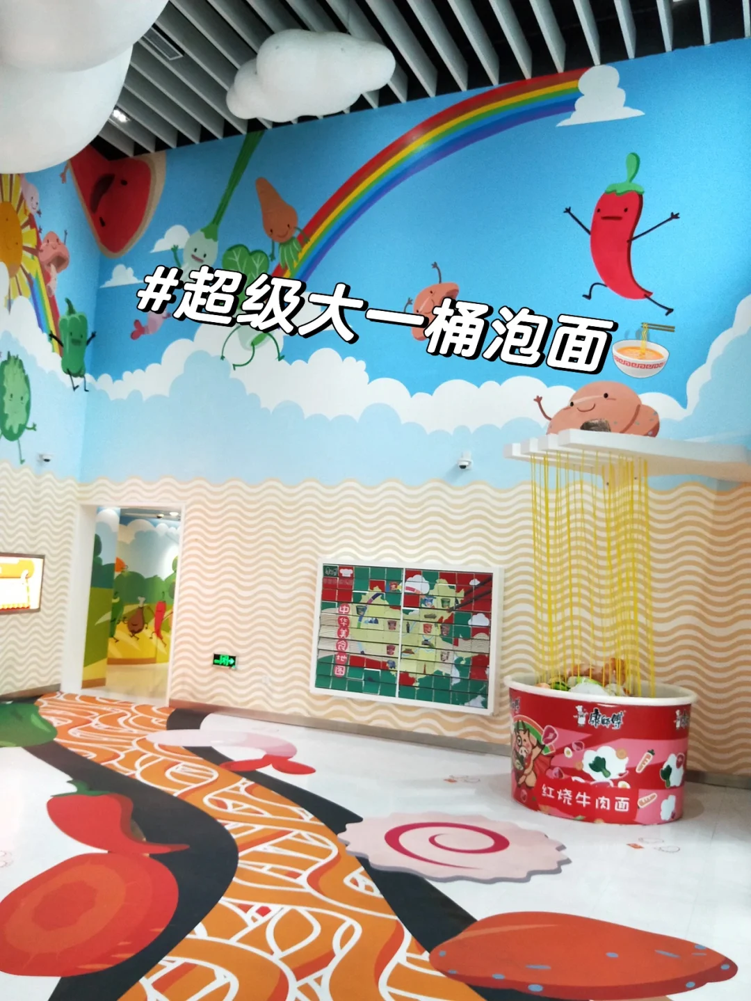 在地图旁边有一个特大号的面碗,没有一个小朋友会拒绝这么大的一桶面[doge]