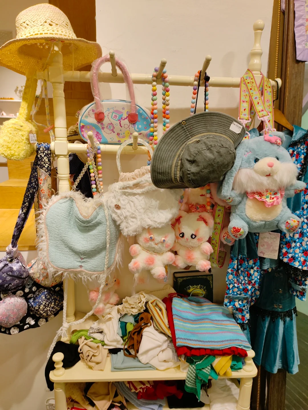 他家有各种款式的饰品,项链、帽子🎩、包包👜等,超级适合搭配衣服🥻!还有一些y2k 亚文化服饰手作等,粉粉嫩嫩,特别可爱~