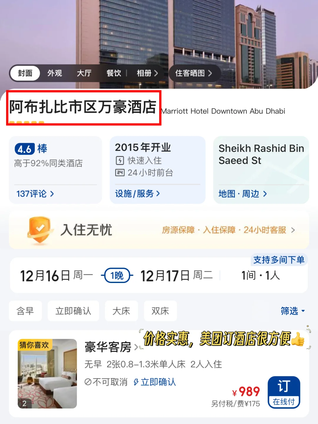 ▫️外地旅行我个人更看重安全、干净、让人放松的连锁酒店!个人更推荐阿布扎比以下几个酒店