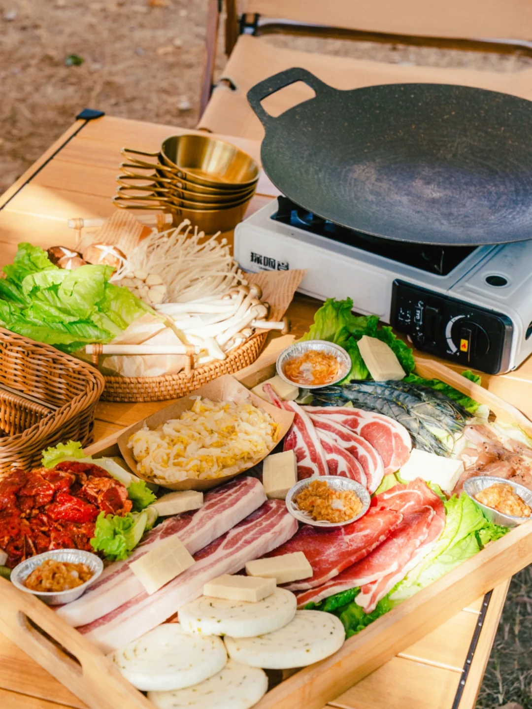 ✔️除了市集上的美食,他家还推出了秋日限定烤肉套餐和火锅套餐🥩我和闺蜜俩人真的是吃的撑,分量很足😭