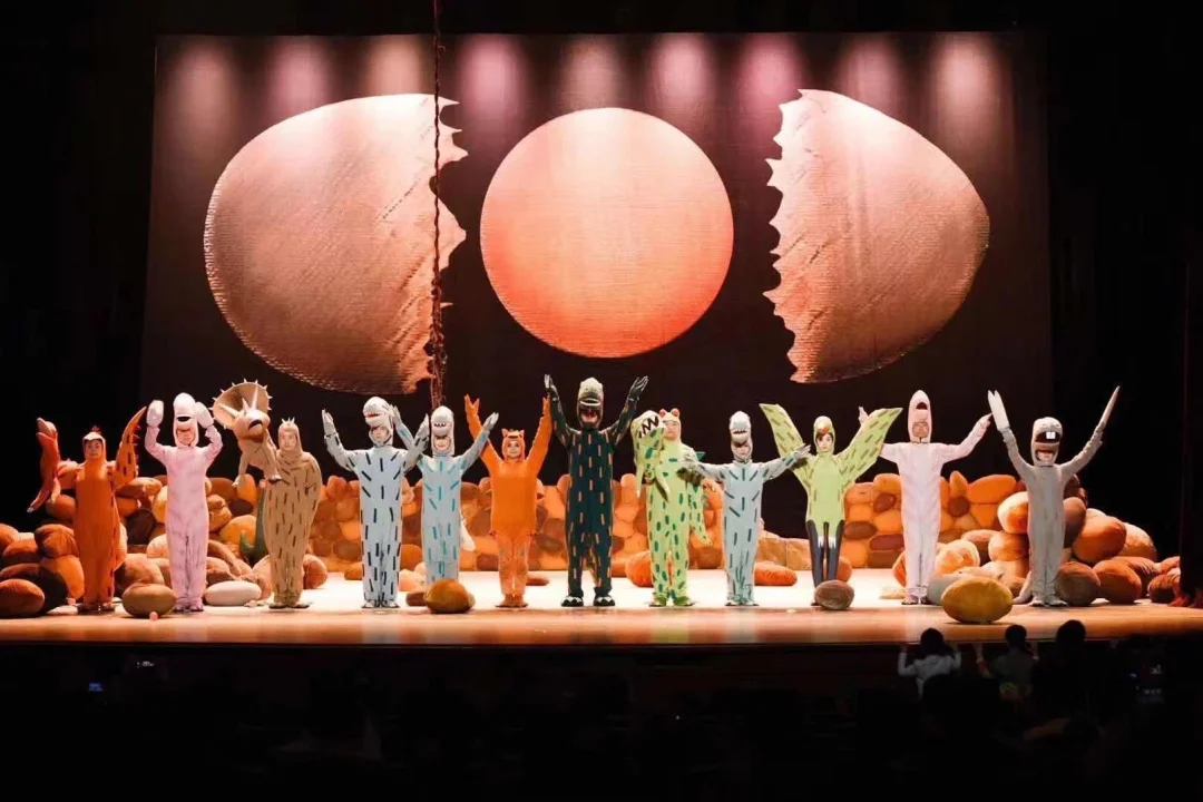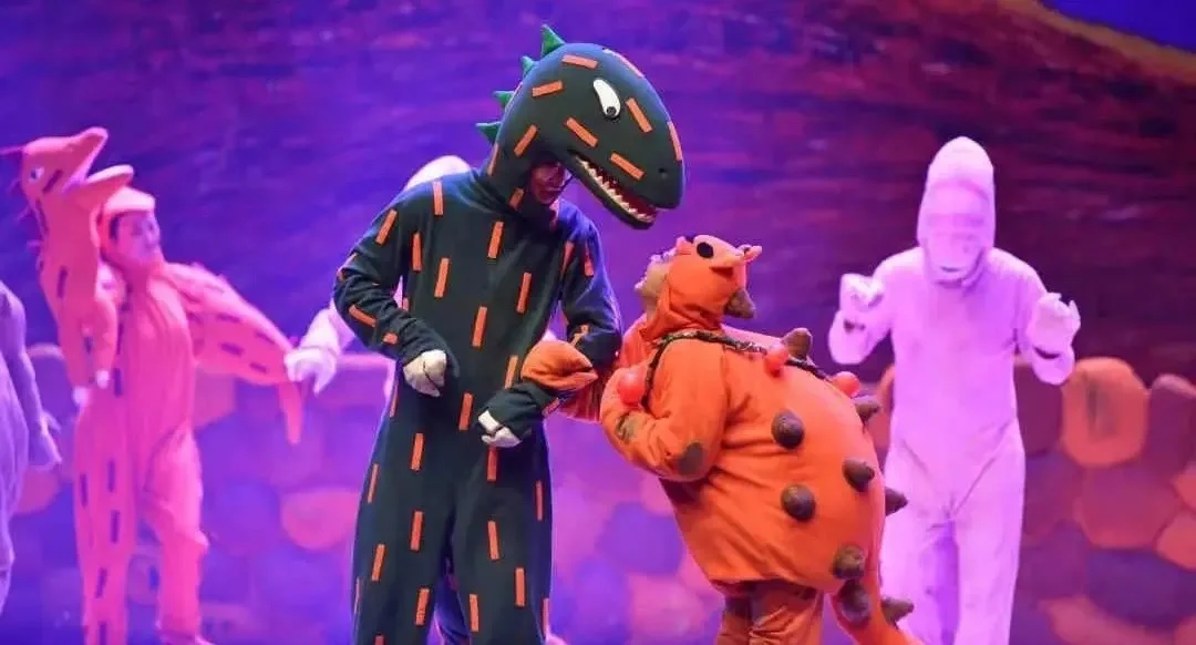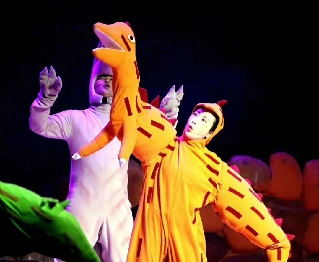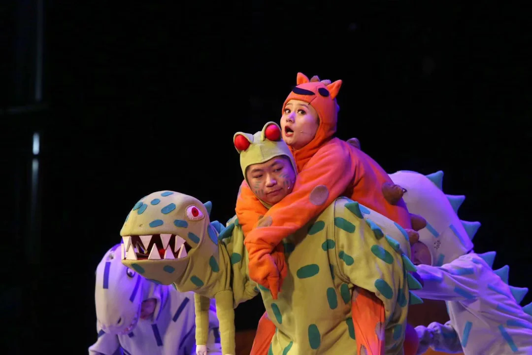 [飞吻R]当孩子坐进剧场,灯光渐暗,舞台亮起,那些在绘本中出现过的善良的慈母龙和不一样的霸王龙,蹦跳着出场跟他打招呼时,孩子们恰如绚烂万花筒的童年世界,有一扇门正在悄然打开!