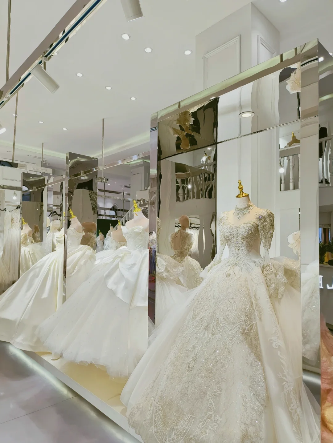 ✔️他家的婚纱款式很多,一字肩、抹胸、V领的、吊带、鱼尾、大拖尾婚纱等,看得我挑花眼了,还好有礼服师根据我的身材帮我挑选了适合我的,太贴心了