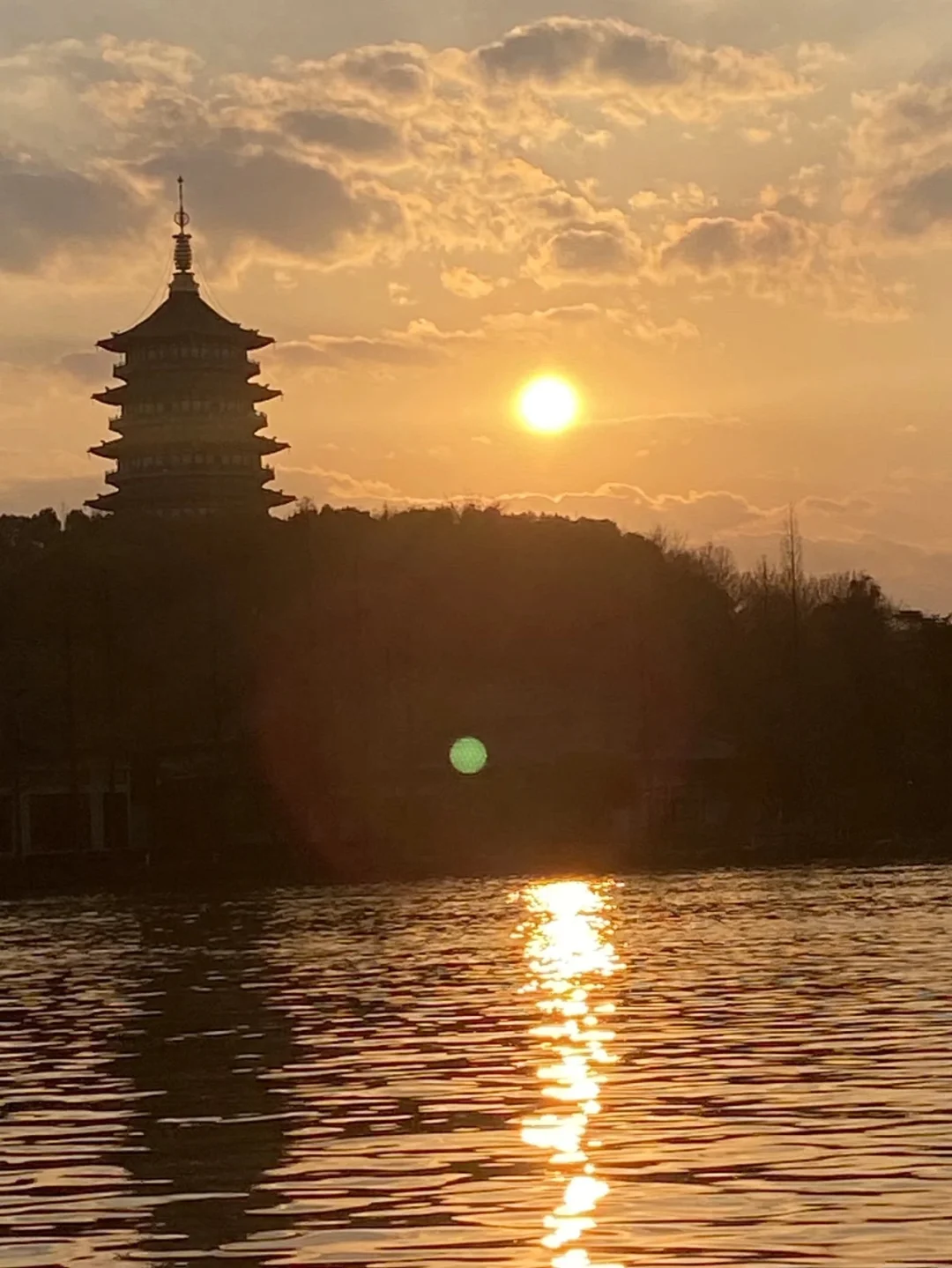 4⃣️雷峰夕照~很多情侣傍晚的时间都会以雷峰塔为背影,拍结婚照的很多,很多摄影师都抓拍!风景绝美!