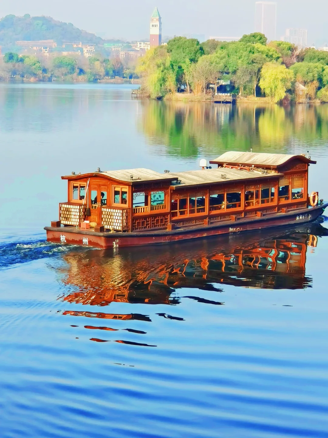 ✔️湘湖的春天真的特别美,很多红衫树都红了,一步一景,一切美景都尽收眼底🍂