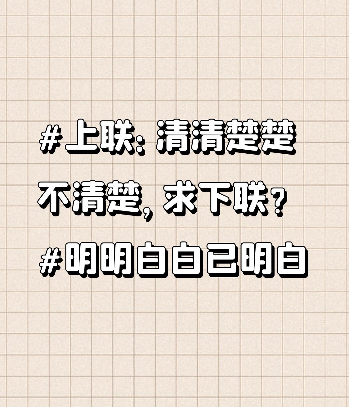 上联:清清楚楚不清楚,求下联?明明白白已明白