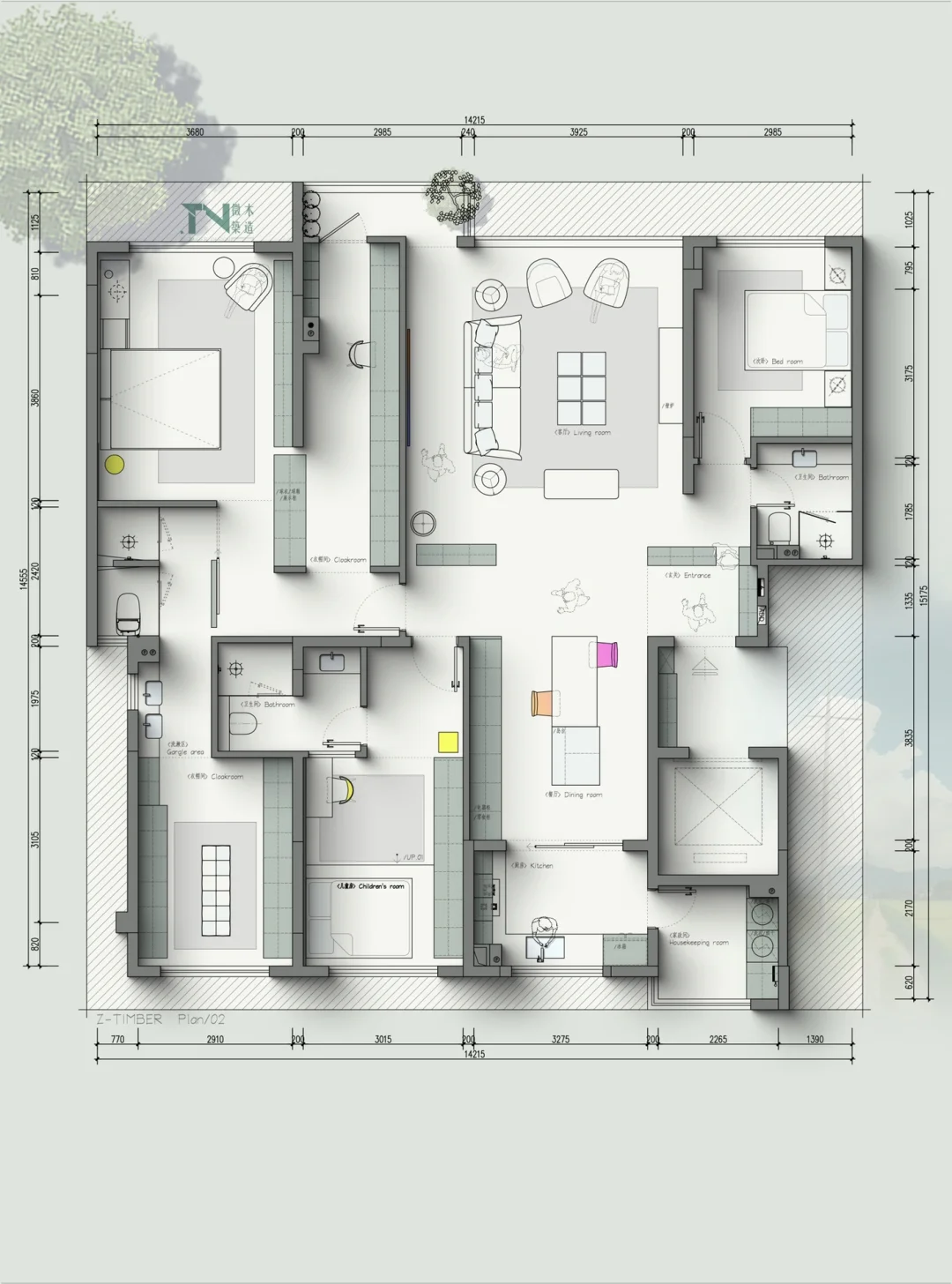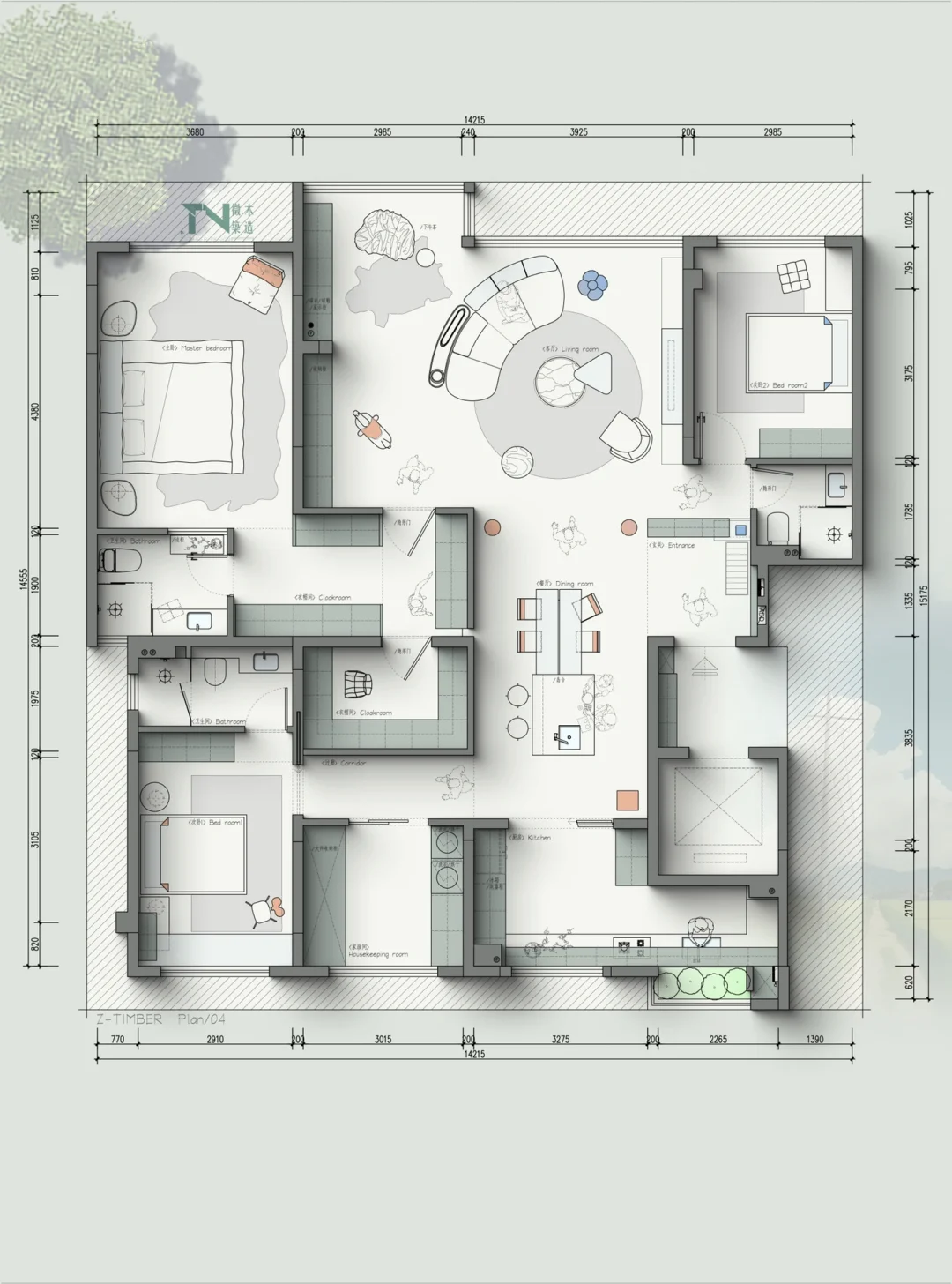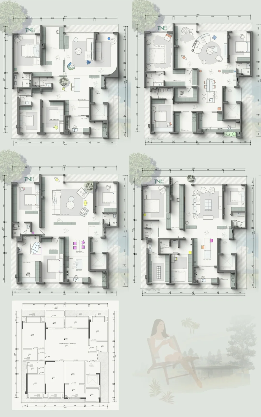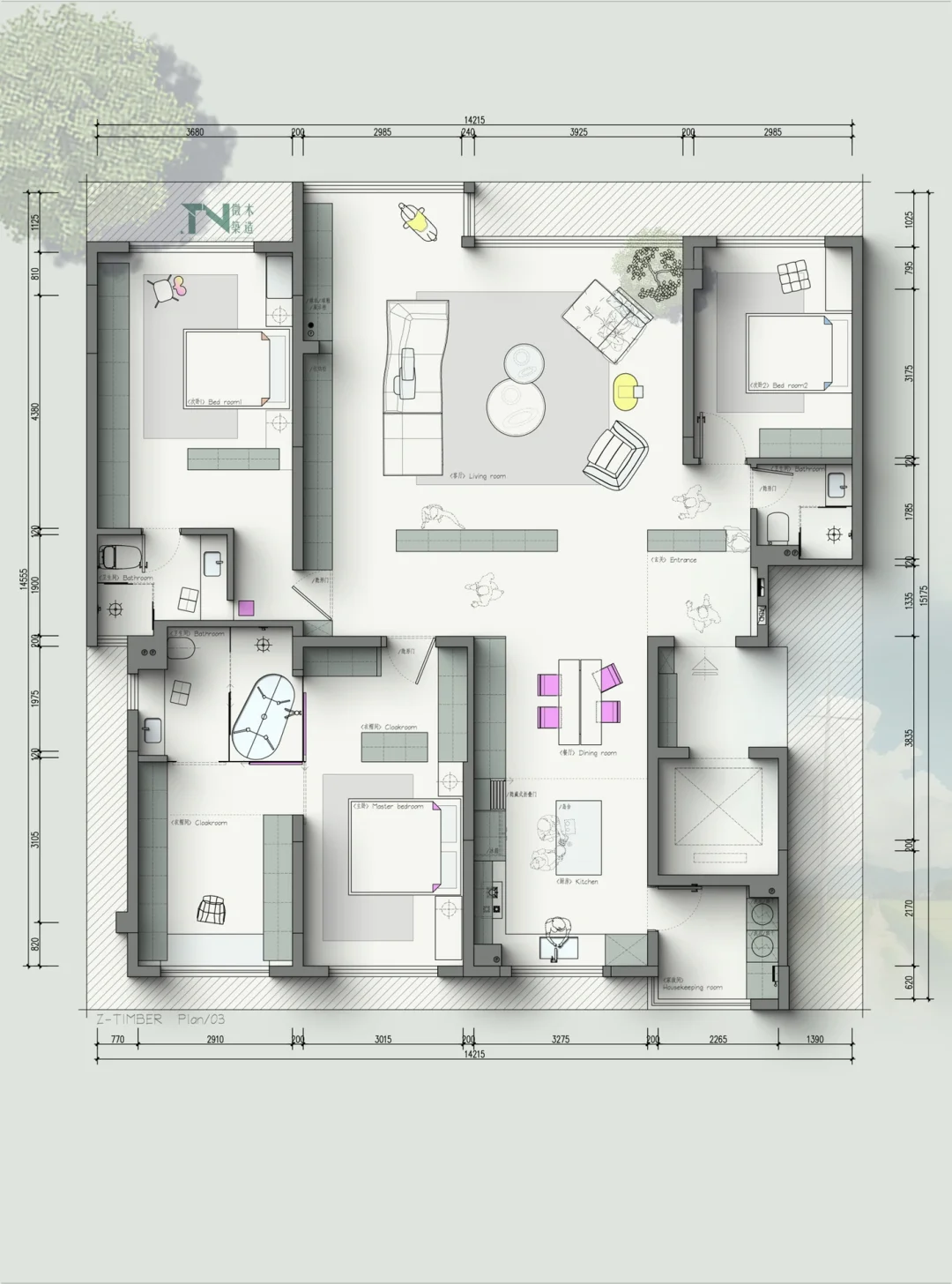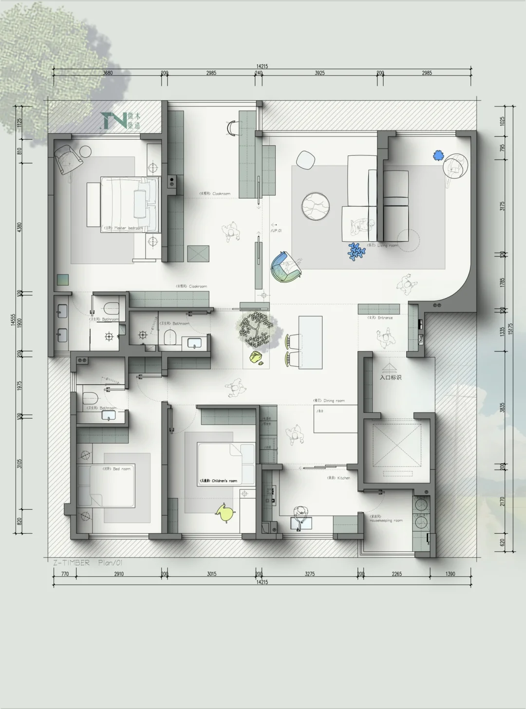 设计需求: 1、4口之家 2、家庭成员: 夫妻俩、外婆、5岁宝宝 3、3个卧室,3个卫生间(无需浴缸、均用马桶和干湿分区) 4、主卫生间尽量保证空间大一点。主卧需要男和女两个衣帽间,男士衣帽间需要配备书桌及展示柜。 5、儿童房需要衣柜、书桌和一个书架 6、外婆的房间