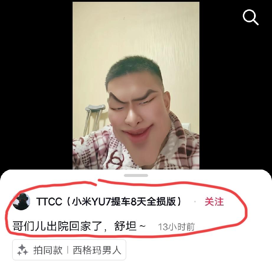 某米预期提车8天全损版车主“TTCC”出院回家了,现在可以确定,他的这个账号没有被封禁,此前网上传的都是子虚乌有! 看这位小兄弟现在的状态还是非常不错的,虽然现在身体有所残疾了,还是挺乐观的。只是有点可惜的是,这么年轻英俊的小伙,未来都要靠拐杖或者假肢出行了! 他的这个事情也警示我们,开车出行还是应该以安全为第一要素,不要图快!!!
