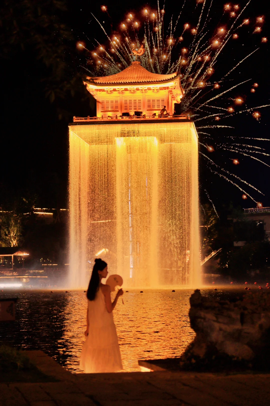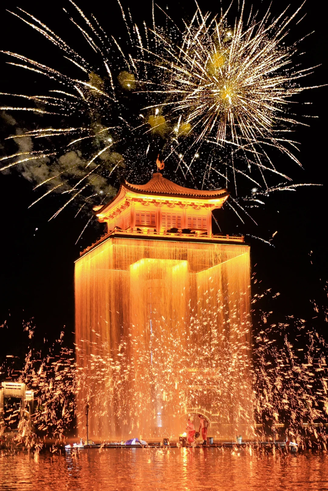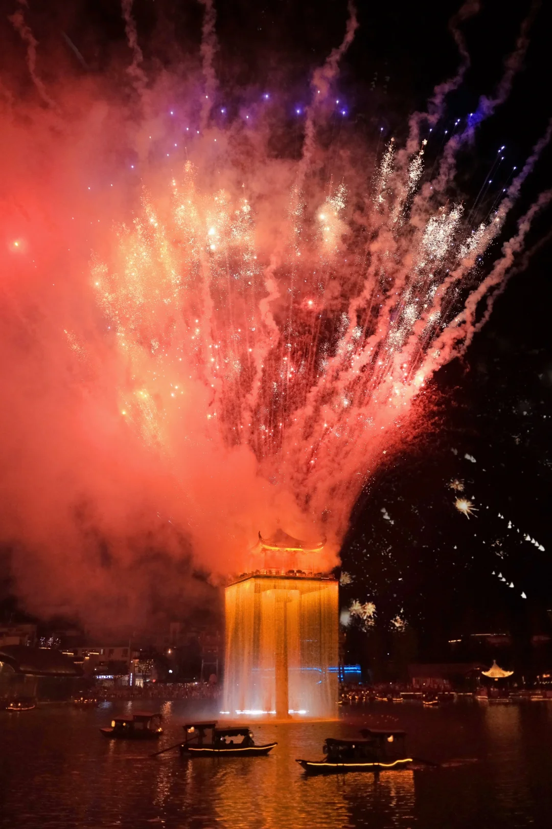 水乐园-游船(进士码头-抱玉塔)-抱玉塔(5个演出)-徽市街-遇见婺源-傩舞广场打铁花-长绸桥-五显堂-烟花