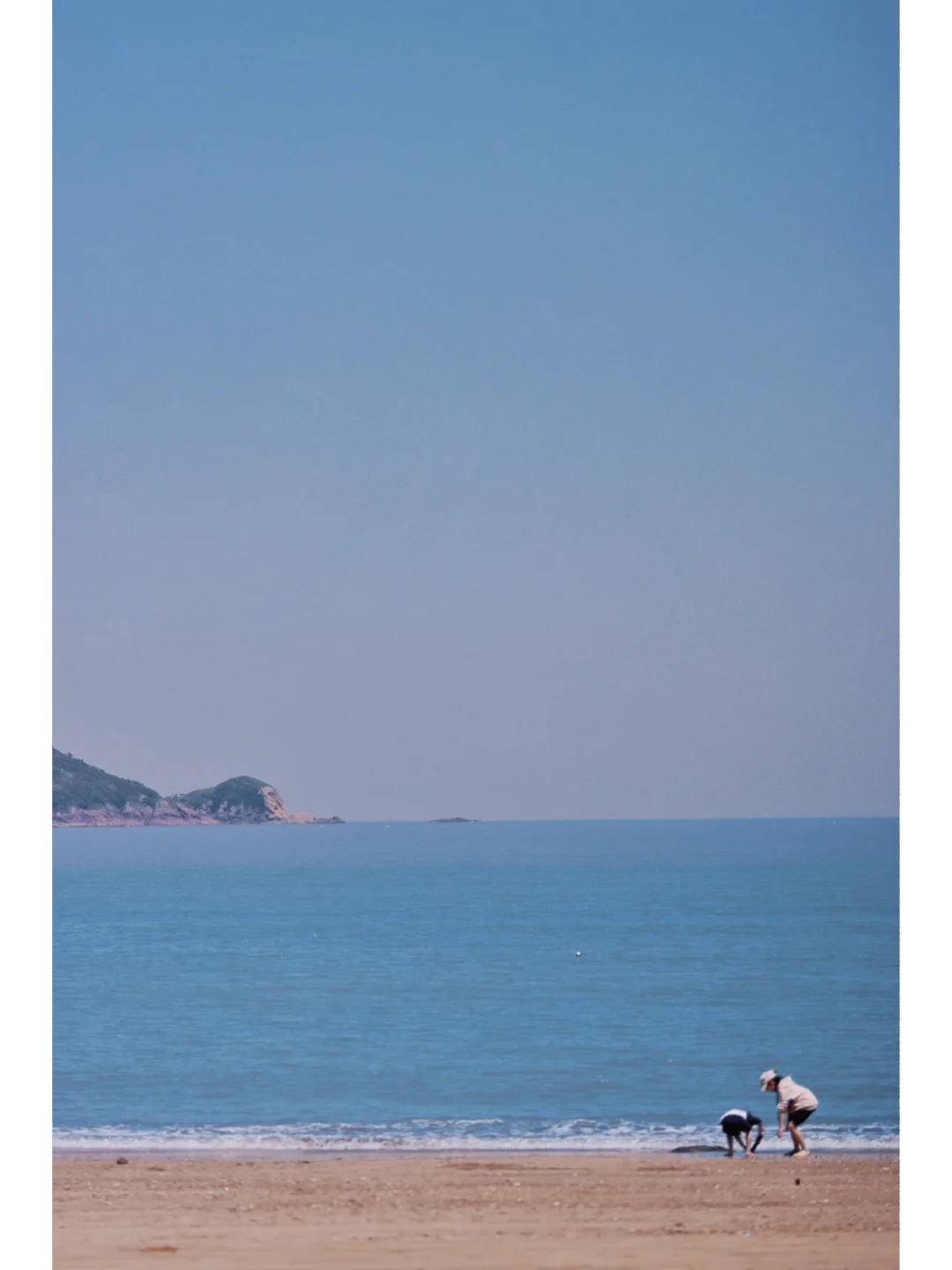 2⃣️这片海滩又有礁石还能赶海,对面的这片海下午时分是蓝色的,无论是打卡拍照还是带娃游玩都很不错!!可以连同东旦沙滩一起玩了~