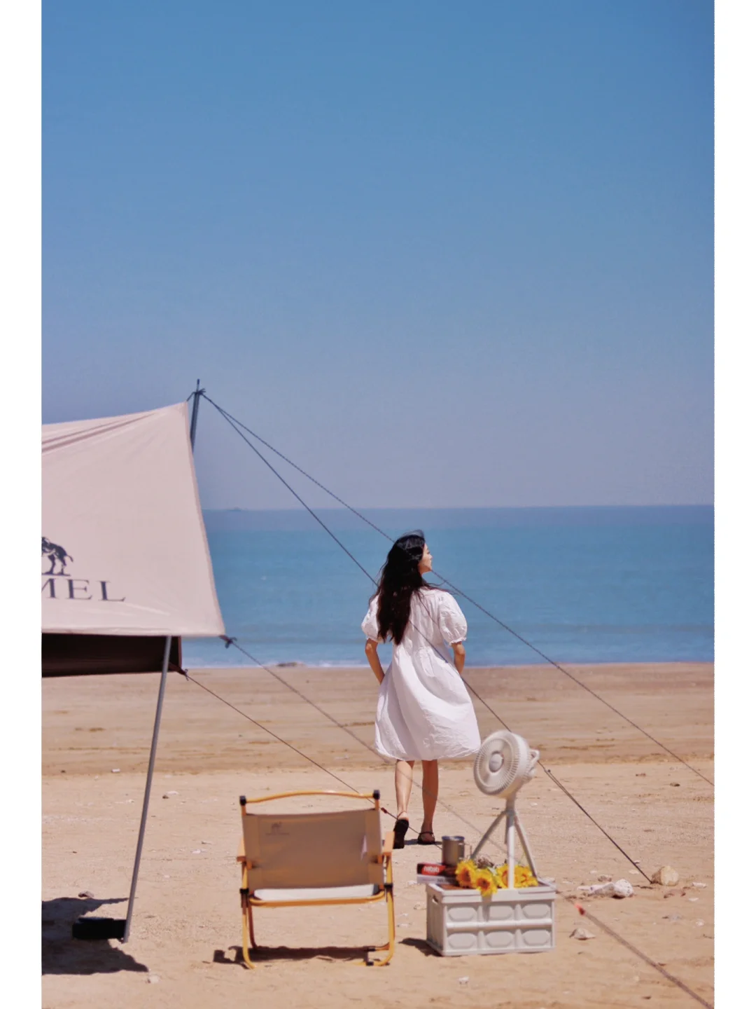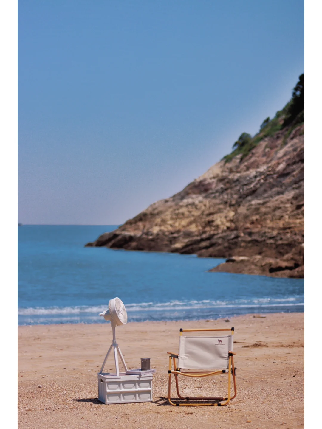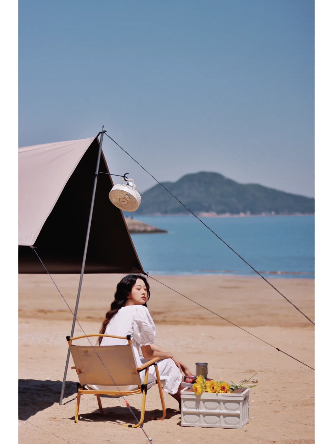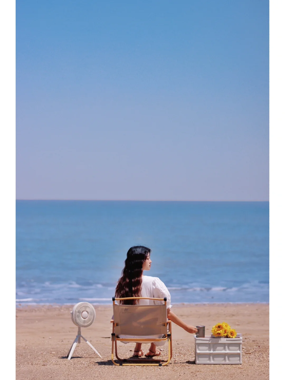 4⃣️带上露营椅和户外风扇坐到海边,可真是太惬意了,夏天到了要做好防晒噢!!