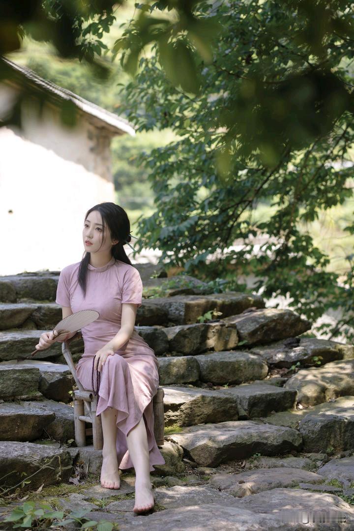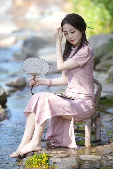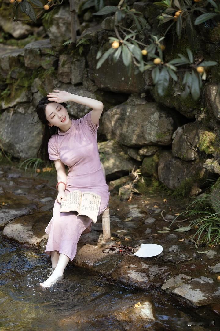 【旗袍六图六种韵|每一帧都是行走的水墨画】🌿 浅粉立领旗袍映着溪水光斑,执扇的手腕上垂落一串碧玉。枇杷从枝头坠向书页的一刹那,仿佛听见了江南烟雨的呢喃。 💫拍摄心机: 1️⃣ 场景选择:溪流/石阶/老墙,每个场景都是天然摄影棚 2️⃣ 道具巧思:书卷、团扇、佛珠,让静态画面充满故事感 3️⃣ 光影魔法:水波反光为面部补光,树叶间隙漏下柔焦滤镜 最爱第4张的灵动静谧——赤足浸在清凉溪水里,裙摆开衩处系着的红绳,恰似《浮生六记》里芸娘的诗意日常。 这六套旗袍造型,你最想穿哪套漫步江南?快来评论区晒出你的东方美学大片!📸 穿旗袍拍照有多美