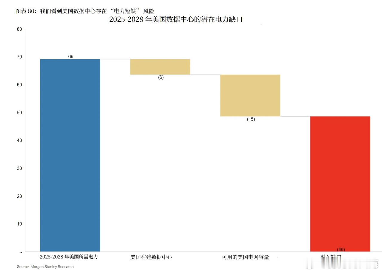 摩根士丹利最新报告指出,随着人工智能基础设施建设加速,美国数据中心用电需求正大幅攀升,预计到2028年将出现高达44吉瓦的电力缺口,相当于44座核电站的发电量。报告认为,若不通过天然气轮机、燃料电池或比特币矿场改造等方式提升供电能力,美国能源系统或难支撑AI产业扩张。该行策略师Stephen Byrd在题为《Powering AI: Bitcoin Conversion, Business Models, a US Power Shortage and the Big Picture》的研究报告中指出,截至2028年,美国数据中心的总电力需求预计将达到约69吉瓦(GW)。其中,约10吉瓦来自在建数据中心,另有15吉瓦可通过现有电网接入,但仍存在约44吉瓦的电力缺口。这一最新数据较摩根士丹利去年12月的预测(36吉瓦缺口)进一步上调。报告指出,若按核电厂发电量折算,44吉瓦相当于约44座核电站的规模。报告提到,美国能源部下属的贷款计划办公室(Loan Programs Office)近期表示,已准备向核电项目提供数千亿美元融资,以推动清洁能源产能建设,缓解潜在电力供给压力。摩根士丹利认为,电力供应短缺可能影响AI相关投资的落地与节奏。根据测算,每新增1吉瓦数据中心容量的建设成本约为500亿至600亿美元,电力接入能力不足可能导致AI基础设施建设周期被拉长。摩根士丹利强调,美国目前没有新的核电反应堆在建,考虑到核电建设周期通常需十年以上,美国若不在短期内通过天然气、燃料电池及存量设施改造等方式提升供电能力,可能无法支撑AI基础设施快速扩张的需求。