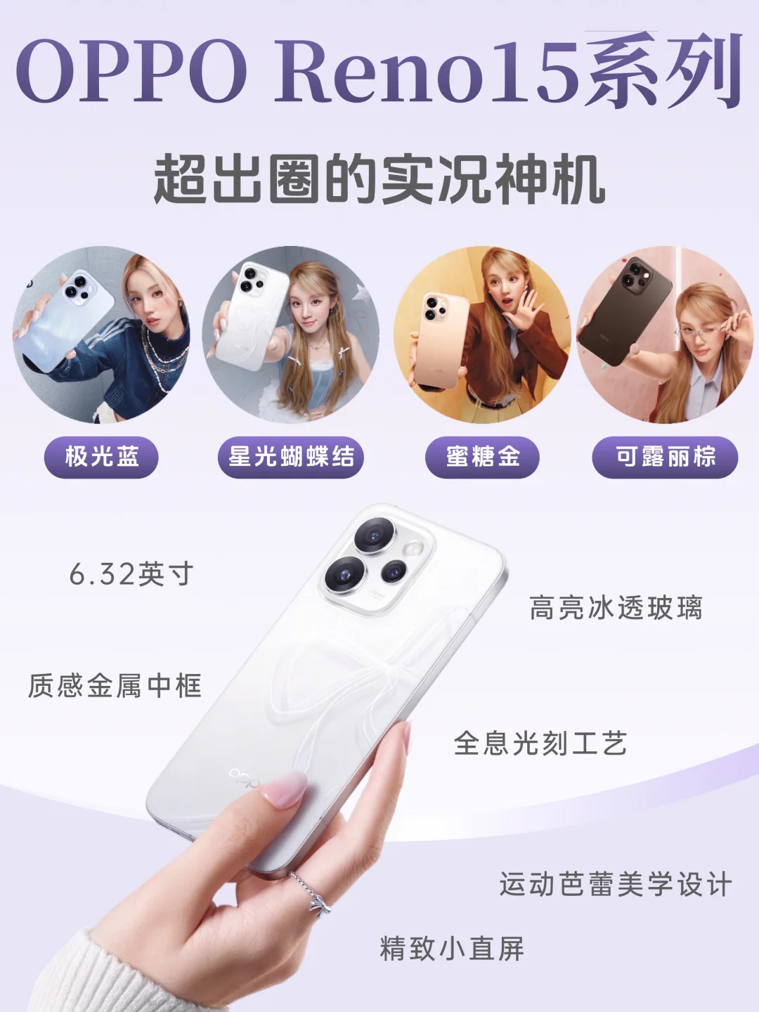 6.32英寸精致小直屏,1.15mm极窄四等边,单手操作无压力,揣进小包包里完全不占地儿,出门拿在手里就是时尚单品